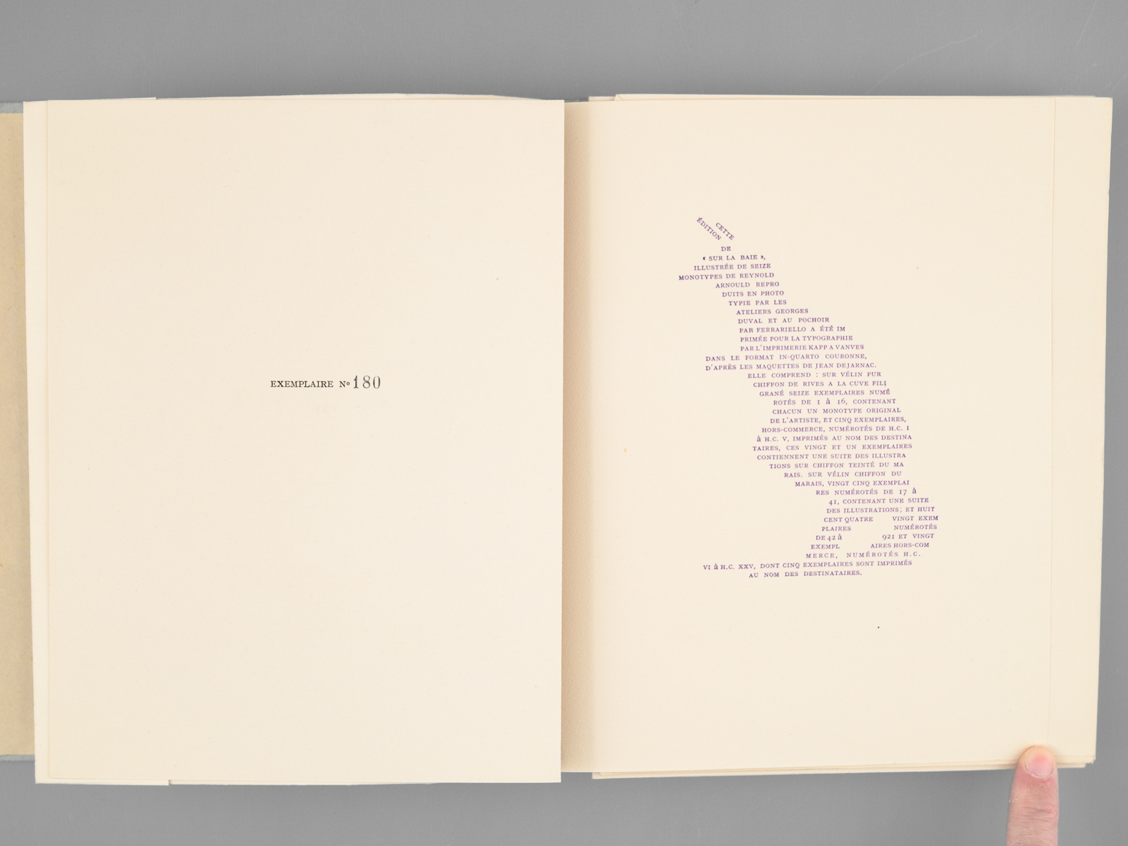 Un des 880 exemplaires numérotés (n° 180) sur velin chiffon teinté du marais, 1 vol. grand in-8 en feuillets sous chemise, chemise cartonnée et étui, Editions Stock, Paris, 1946, 204 pp. Commentaire : Bon état (qq. légers frott. sur l'étui).