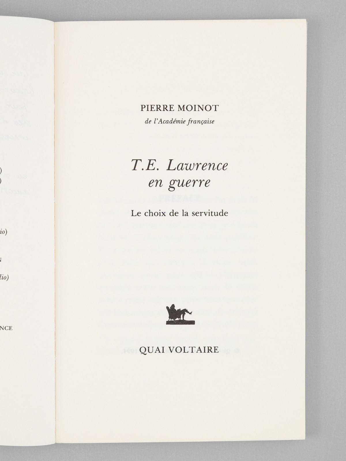 T.E. Lawrence en guerre - Le choix de la servitude [ Livre signé par l'auteur - Envoi à Maurice Druon ] - Auteur: MOINOT Pierre (1920-2007) - Année d'édition: 1994