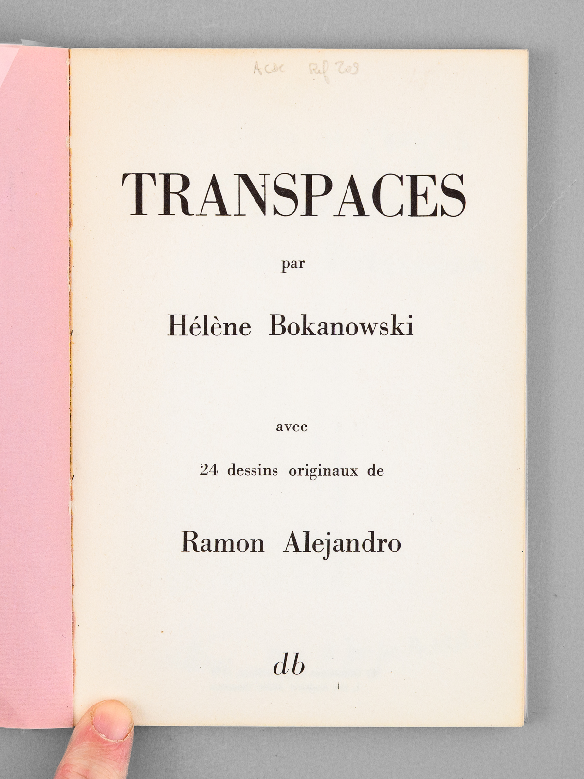 Transpace - avec 24 dessins originaux de ramon Alejandro [ exemplaire dédicacé par l'auteur au compositeur Georges Auric et à son épouse ] - Auteur: BOKANOWSKI, Hélène ; ALEJANDRO, Ramon (ill.) - Année d'édition: 1979