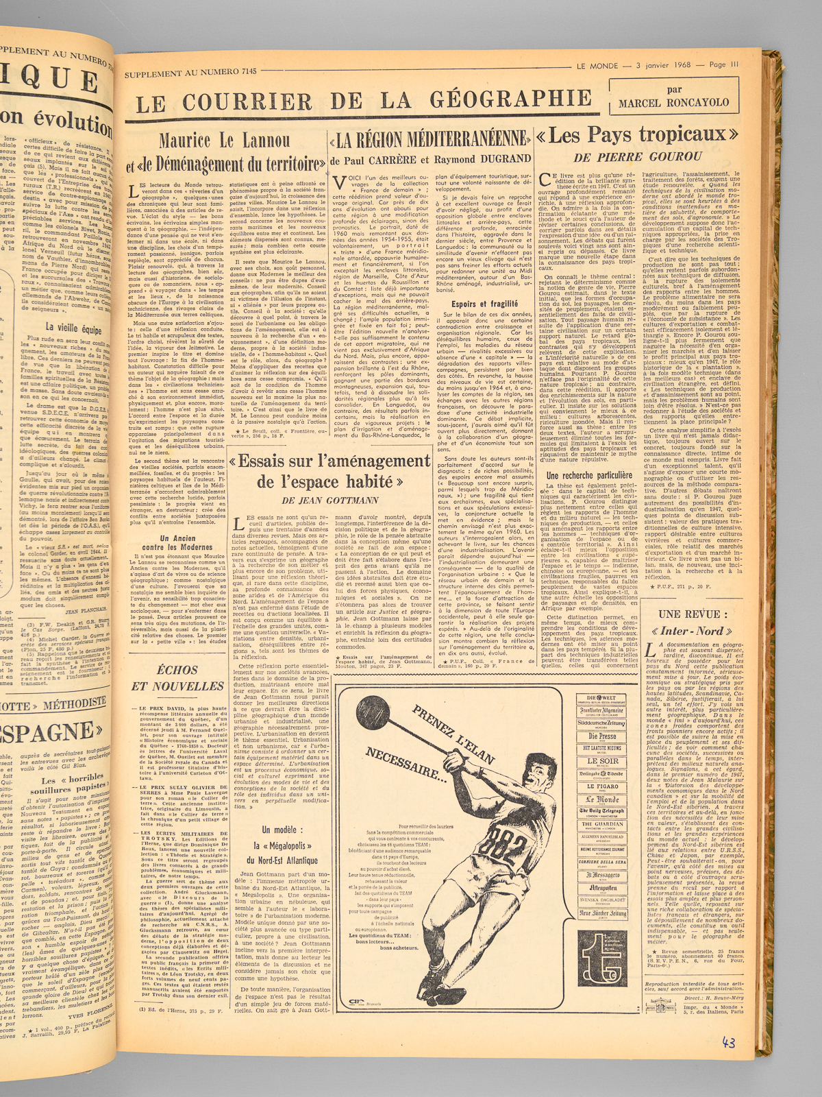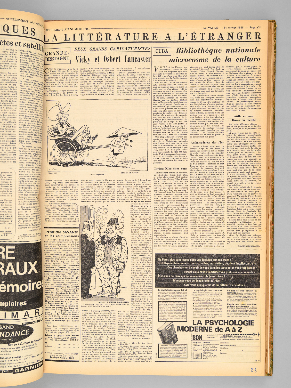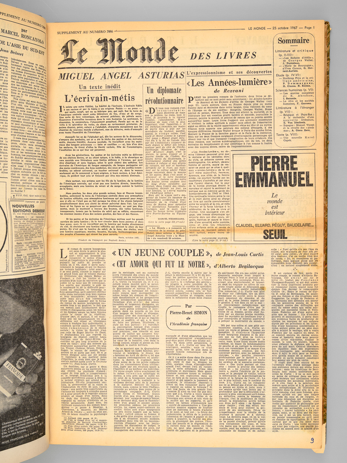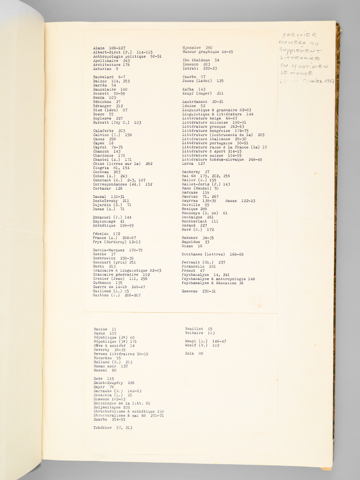 Commentaire : Exemplaire relié du supplément littéraire du Journal 'Le Monde', non suivi, réunissant 41 numéros pour la fin de l'année 1967 et l'année 1968 (on joint le numéro du 17 août 1968, volant). Bon état. Une lecture passionnante que celle de ce supplément littéraire, dont le format a rarement conduit à sa conservation.