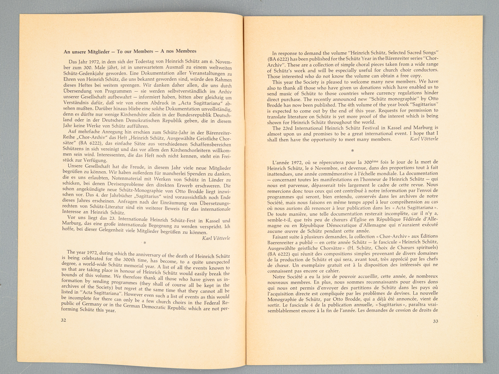 Acta Sagittariana , news of the International Heinrich Schutz-Gesellschaft - set of 24 issues , 1963 n.1 to 1/1973