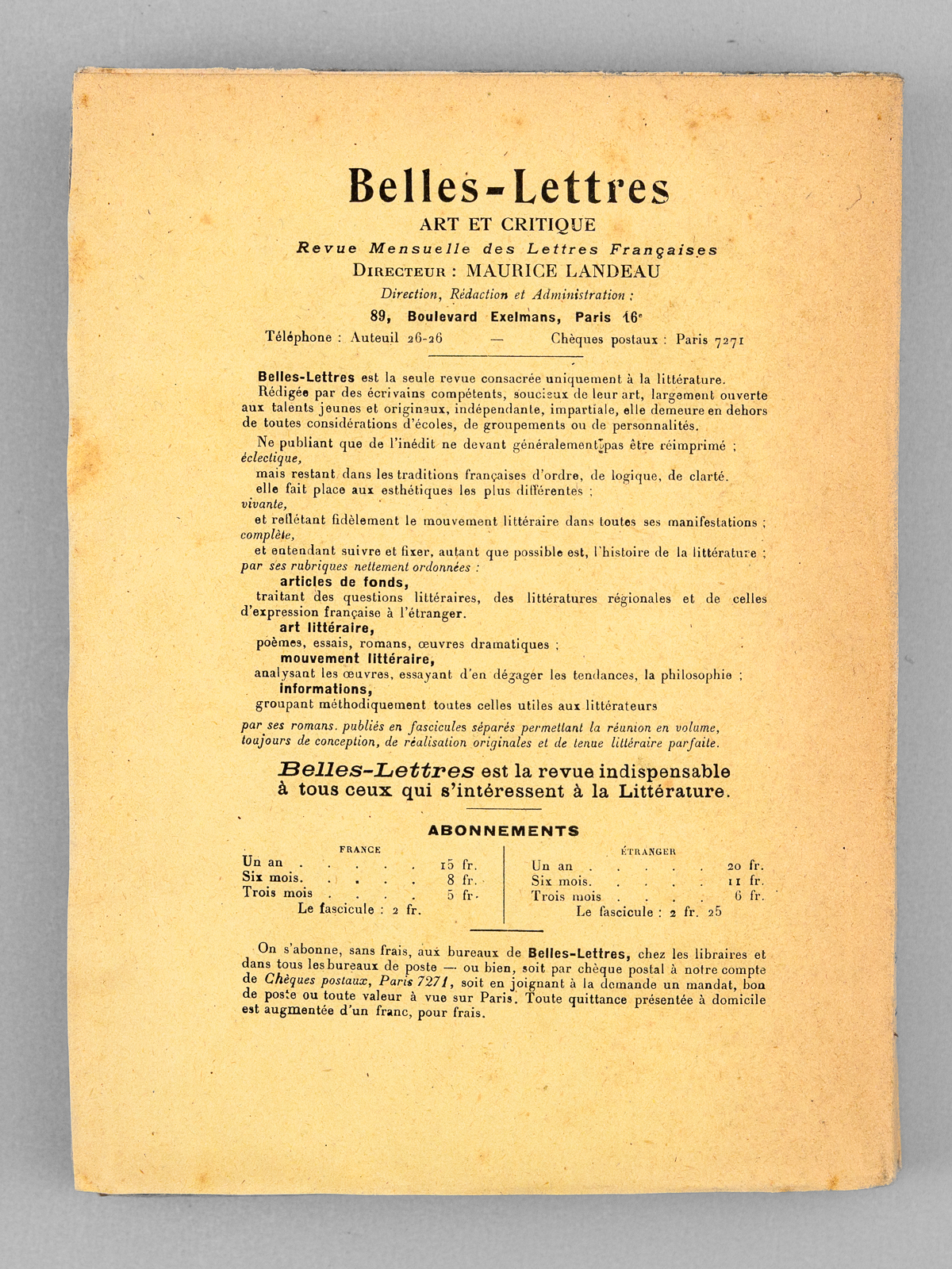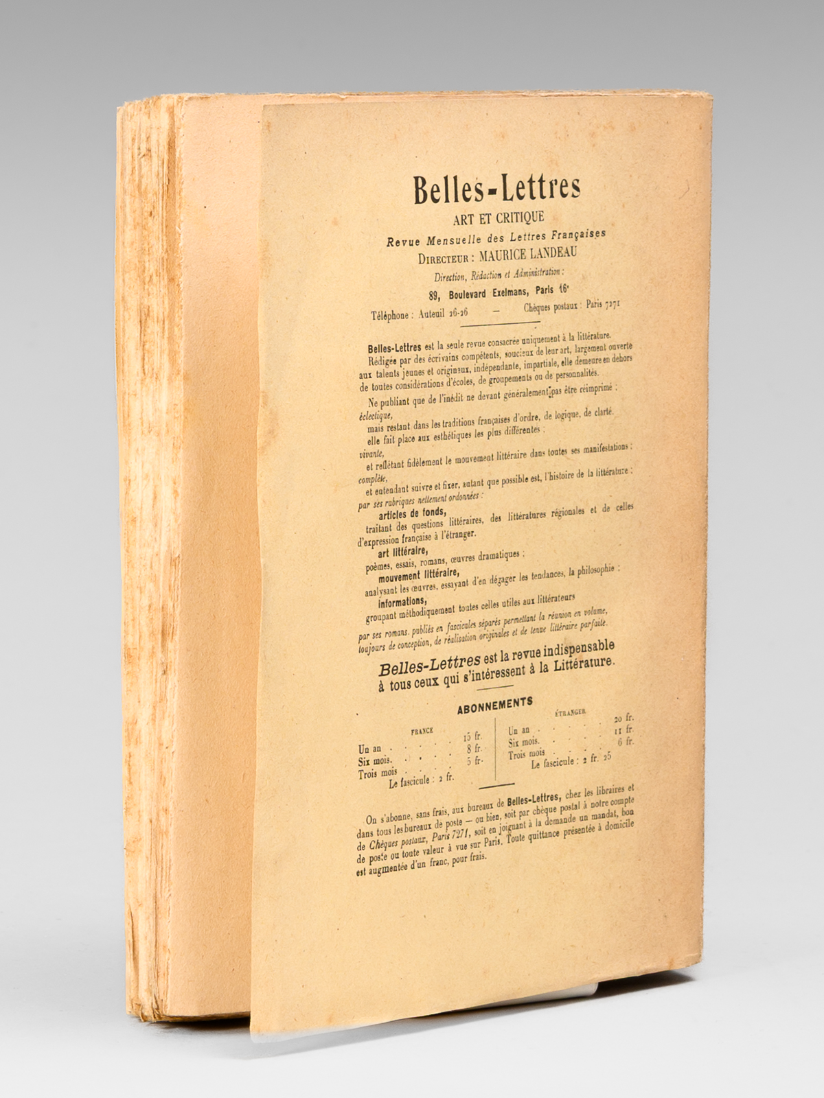 1 vol. in-12 br., Aux éditions de ' Belles-Lettres ', Paris, 1921, 259 pp.
