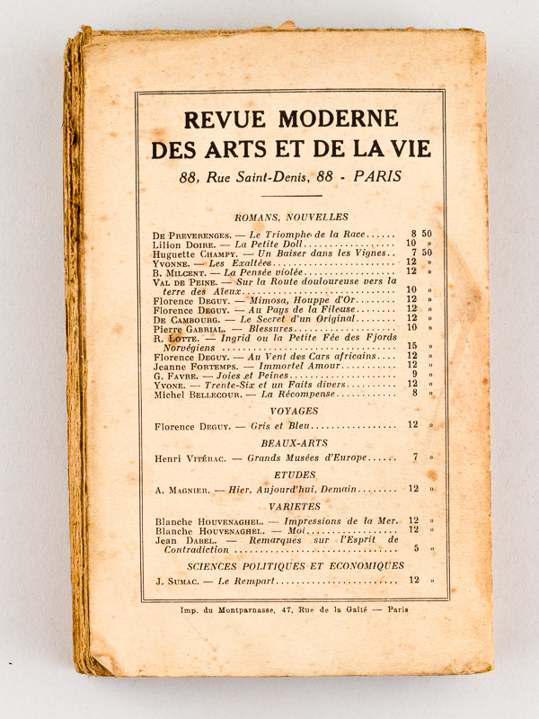 1 vol. in-12 br., Revue moderne des Arts et de la Vie, Paris, 1932, 303 pp.