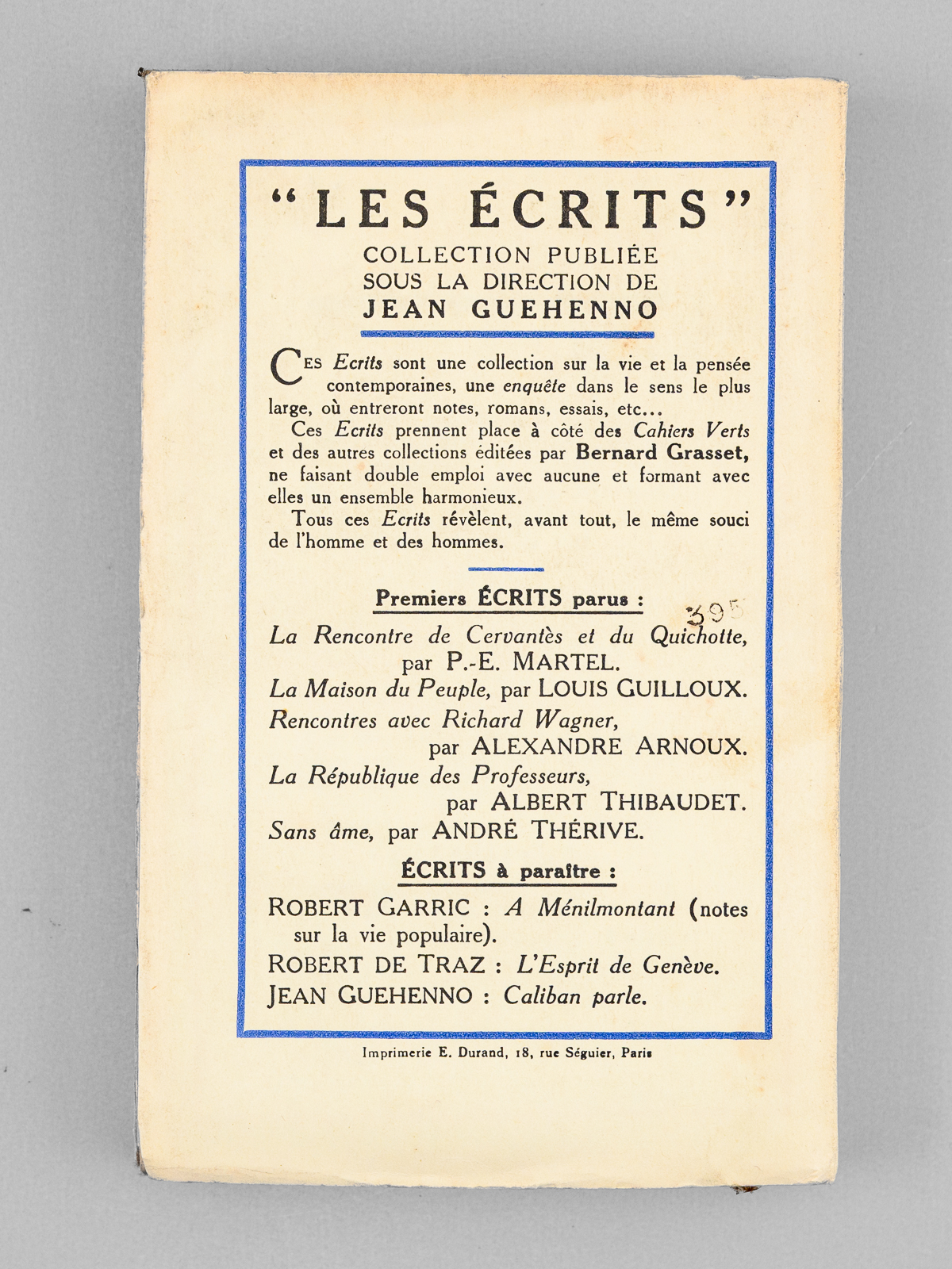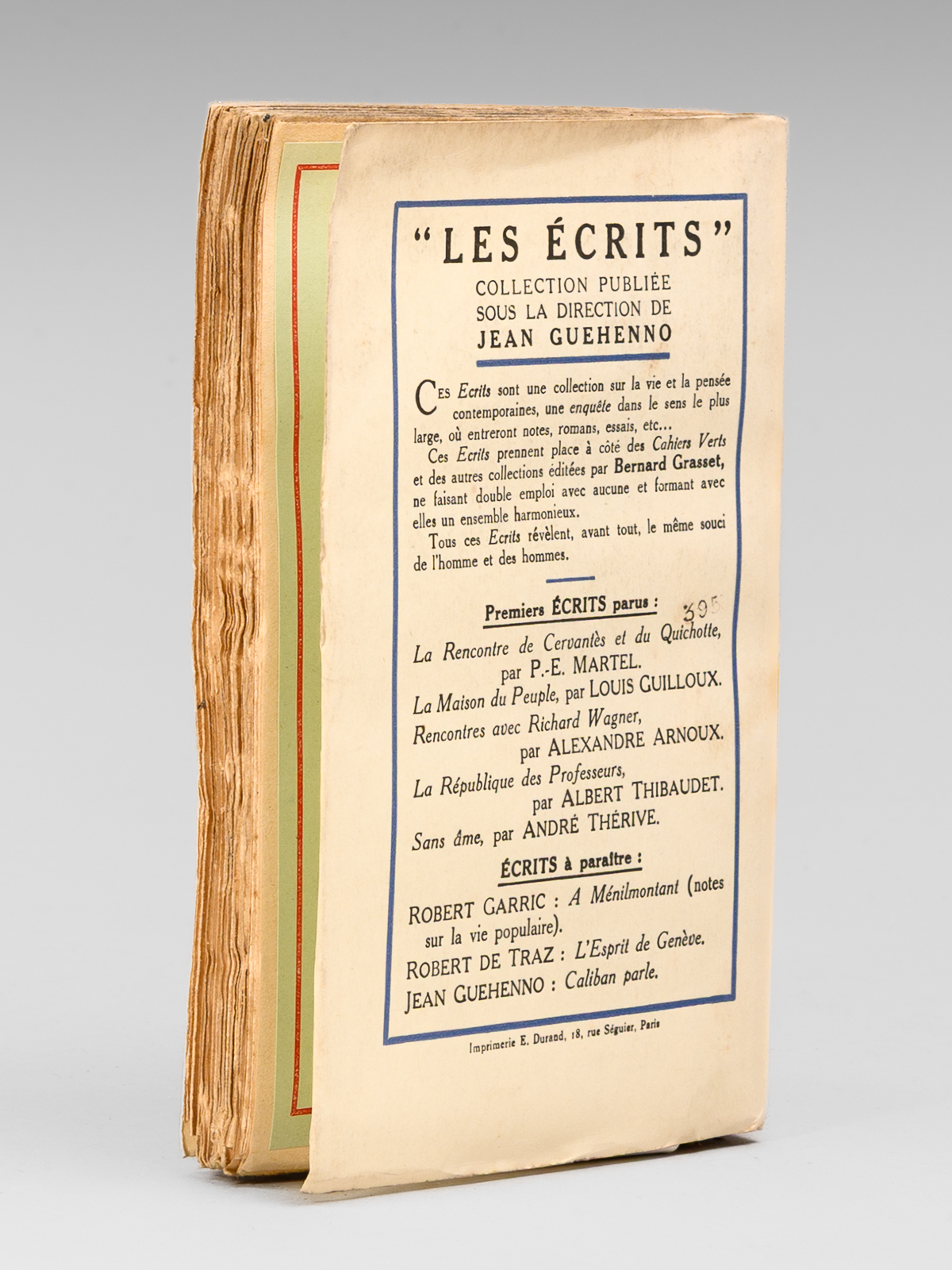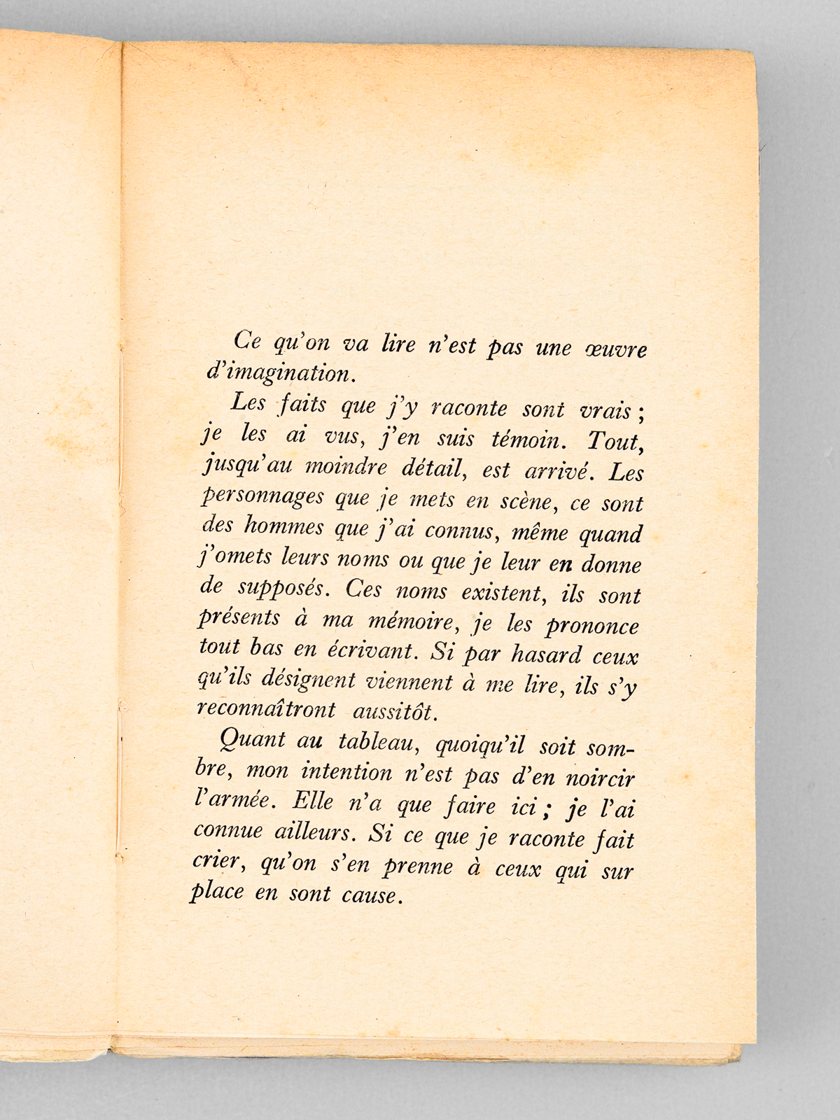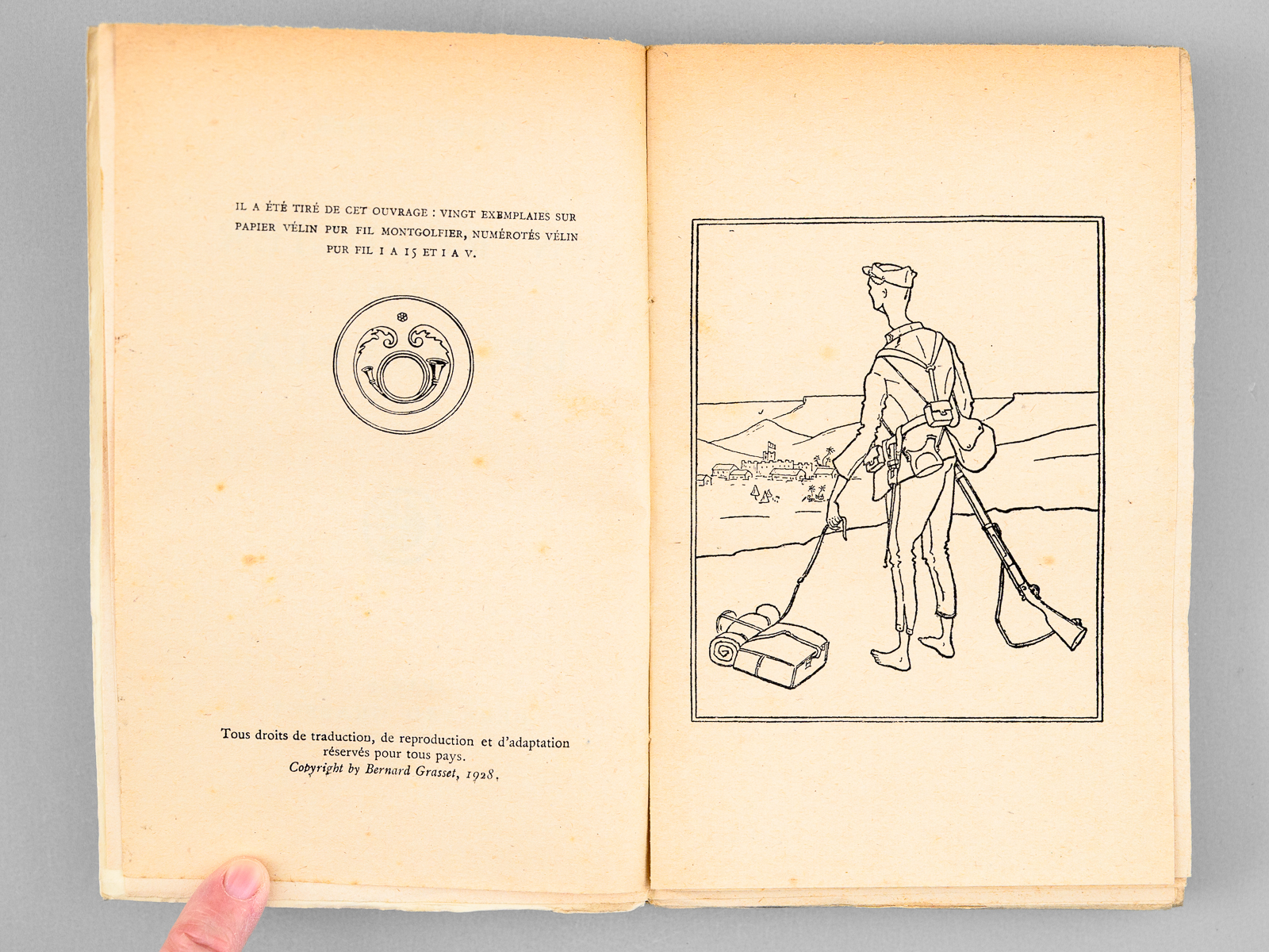1 vol. in-12 br., Bernard Grasset, Paris, 1928, 259 pp. Commentaire : Bon état. Pour information, dans l'Armée française en Afrique, le surnom de 'réguliers' désignait les non-légionnaires. Quant aux 'Joyeux', il s'agissait de ceux qui étaient passés par le Bat d'Af.. Un ouvrage au ton léger, par un auteur qui eut un parcours personnel étonnant. Issu d'une famille d'intellectuels (son père était agrégé de philosophie), très catholiques et originaire de Savoie, après des études à Louis-le-Grand, il s'engagea en 1916 dans les Chasseurs Alpins. Blessé et décoré, il ne fut pas pas démobilisé dès la fin du conflit, mais fit un séjour de 'volontaire désigné nominativement' pour aider à l'encadrement des troupes de l'Armée d'Afrique. Cette expérience est le sujet du présent livre. Il verra de nouveau le feu pendant la Seconde Guerre Mondiale, notamment sur le Chemin des Dames où, fait curieux, il avait déjà combattu à l'automne 1917. Plus étonnant encore, en 1928, Joseph Dimier entra en religion comme moine trappiste, sous le nom de Père Anselme. Ordonné prêtre en 1932, il deviendra un spécialiste de l'art cistercien. Il passa les 30 dernières années de sa vie à l'abbaye Notre-Dame de Scourmont (Chimay, Belgique]. Ouvrage peu courant.