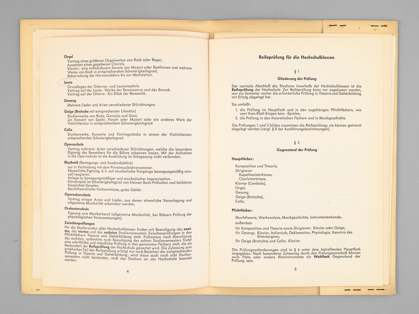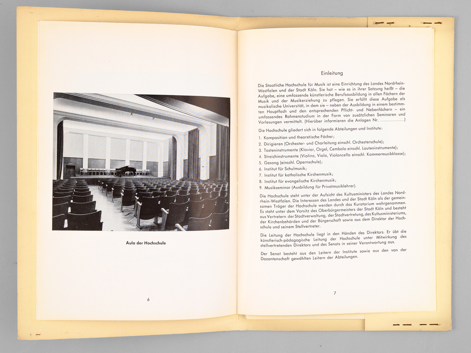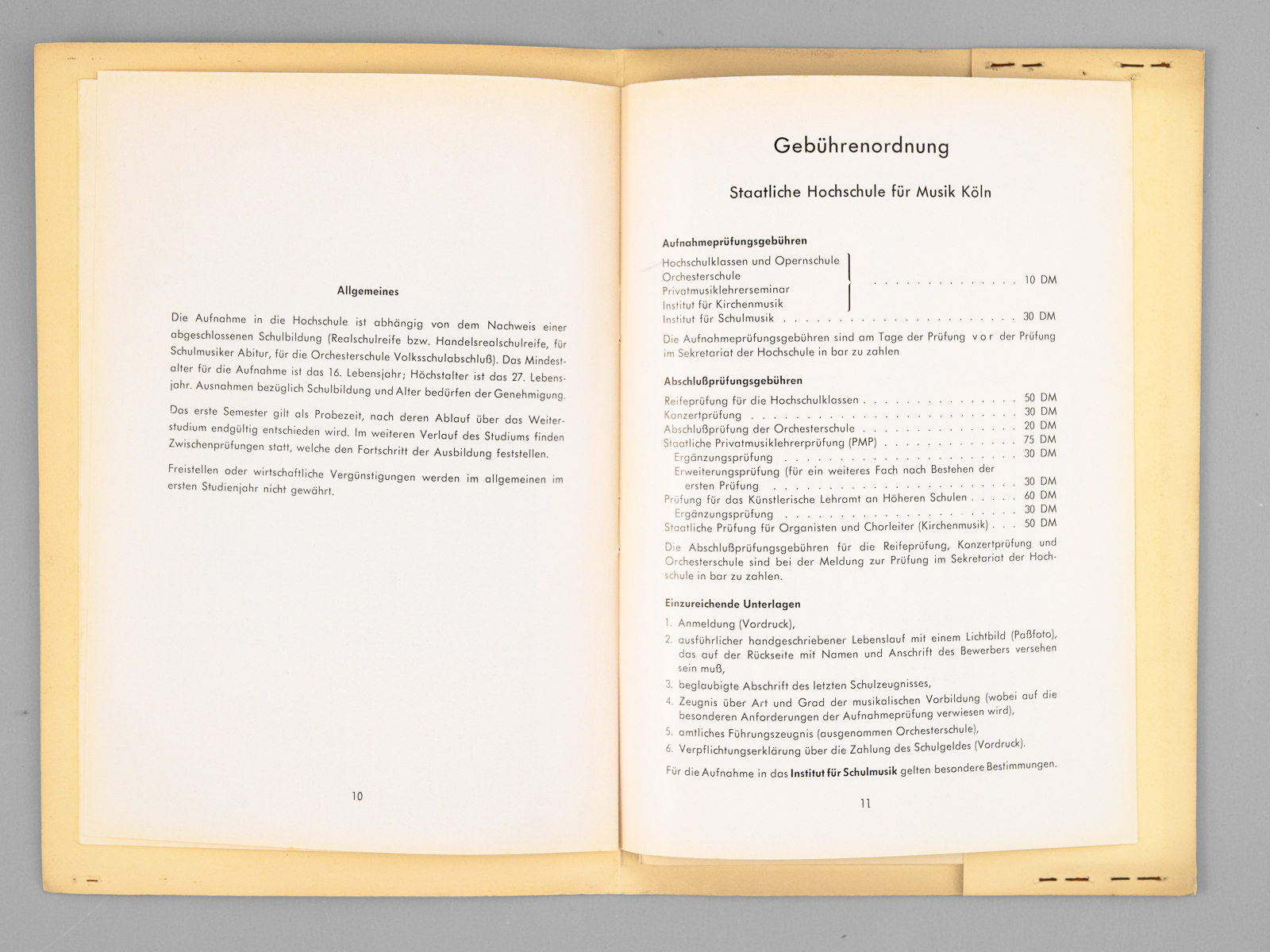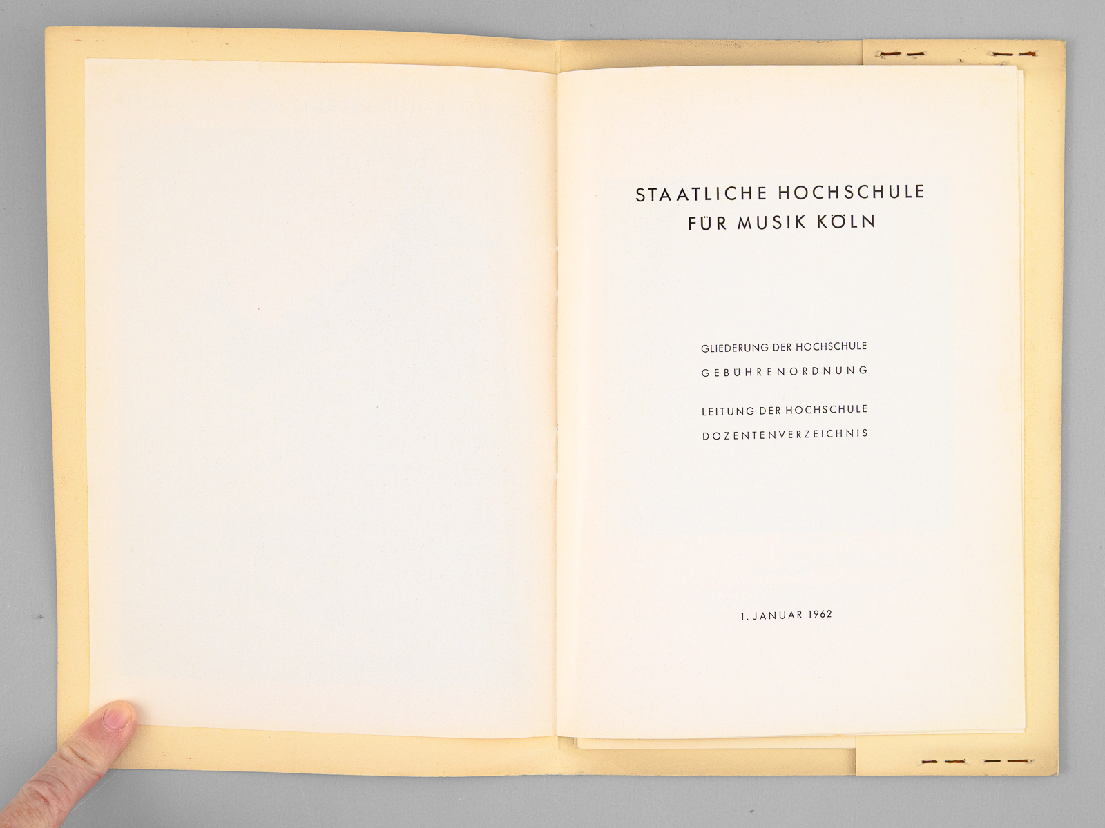 Staatliche Hochshule für Musik Köln - Gliederung der Hchoschule - Gebührenordnung - Leitung des Hochschule - Dozentenverzeichnis ( 1. Januar 1962 )
