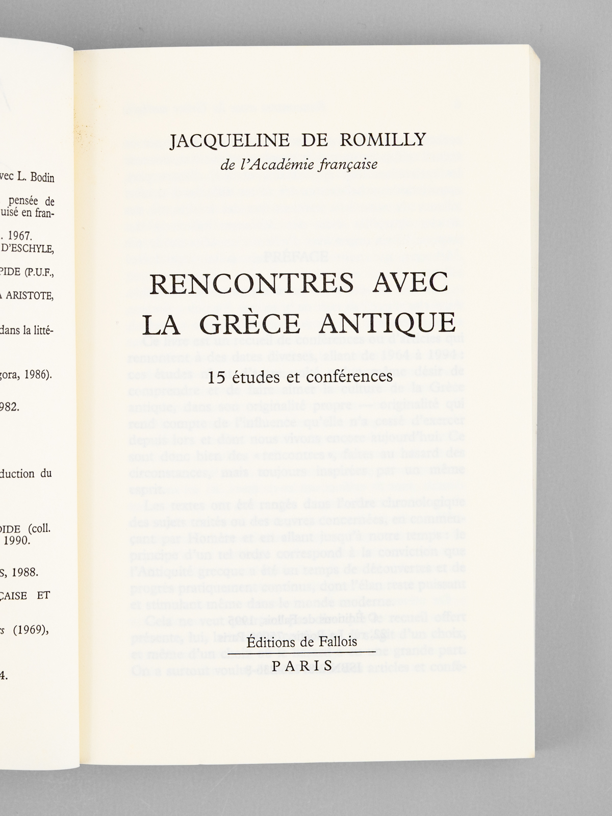 Rencontres avec la Grèce antique , 15 études et conférences [ Livre signé par l'auteur ] - Auteur: de Romilly, Jacqueline (1913-2010) - Année d'édition: 1985