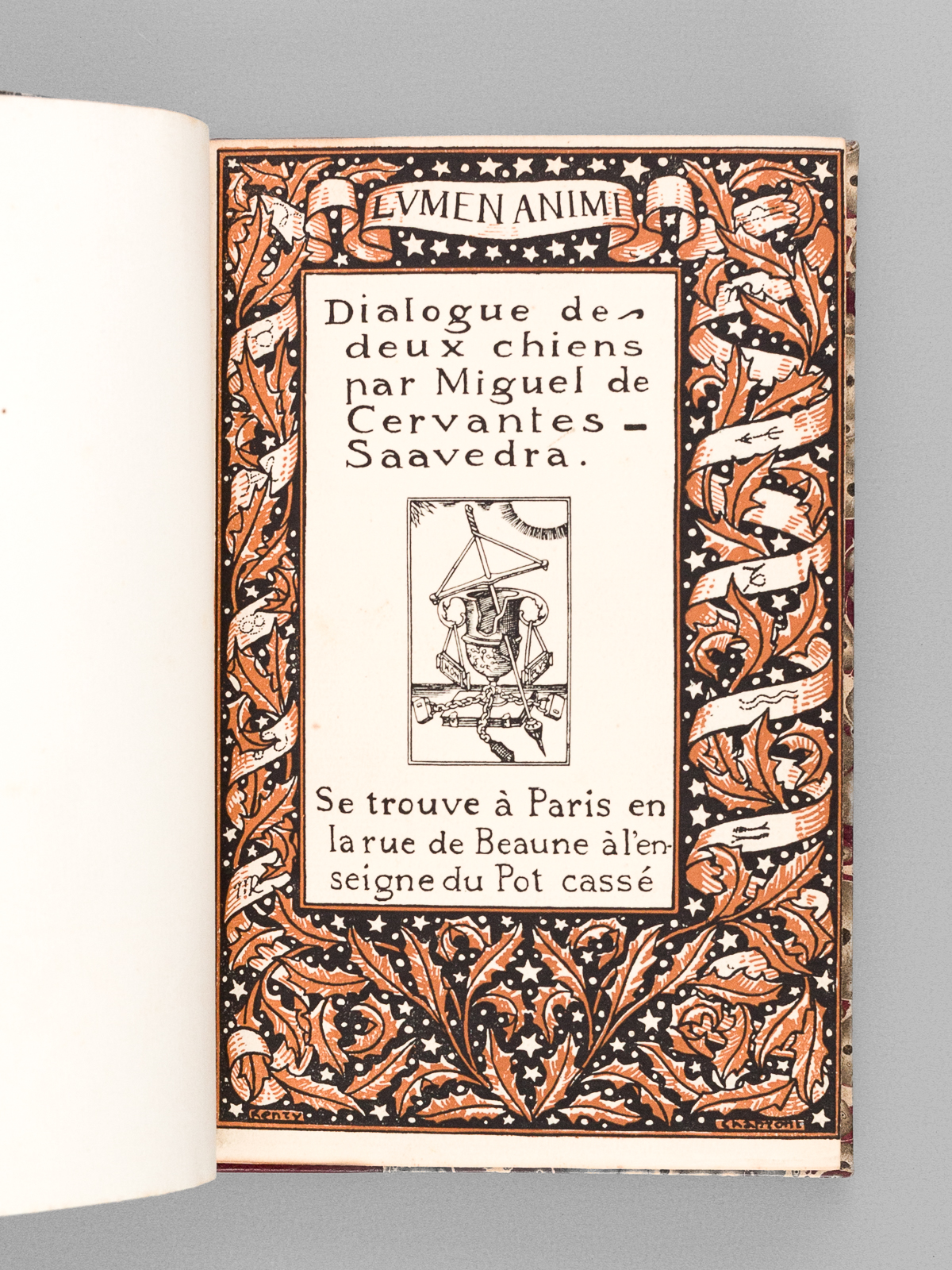 Ce livre traduit de l'espagnol par Bouchon-Dubournial a été illustré par Henry Chapront, un des 2500 exemplaires sur Papier de Bornéo (n° 1067) après 50 Japon et 75 Hollande, 1 vol. in-12 reliure demi-chagrin maroquiné bordeaux, dos à 5 nerfs, couvertures et dos conservés, tête dorée, collection Lumen Animi, A l'Enseigne du Pot Cassé, Paris, 1931, 183 pp. Commentaire : Bon état pour cet exemplaire bien relié (rouss., ex-libris héraldique aux armes échiquetées du Comte Folchi, gravé par Stern).