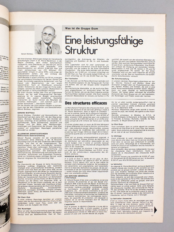 1 vol. in-folio softcover, col. cover, b&w. or col. ill., Foto Shoe, Editecnica Italiana S.R.L., Milano, 1977, 95 pp. Text in Italian, with transl. in English, French and German. Includ. articles on : New york footwear week : boots triumph ; The ERAM Group ; Fiorenzula-MD Group ; Window shopping in New York Commentaire : Nice copy (handwritten date on top cover, otherwise a very nice copy) of this issue of an Italian monthly magazine on footwear fashion & business. In 1975, the magazine 'Foto shoe' changed its title into 'Foto Shoe 30', which has remained unchanged since then. Scarce.