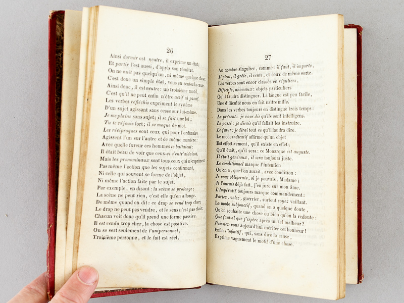 Par Pierre-Léon Chavignaud, ancien maître de pension, auteur de plusieurs ouvrages, 3e édition, 1 vol. petit in-12 reliure de l'époque demi-basane rouge, dos lisse orné en long, Palais-Royal, chez les Marchands de Nouveautés, Paris, Chez P. Faye, Bordeaux, 1841, 143 pp. Commentaire : Bon état (reliure lég. frottée) pour ce curieux et amusant petit ouvrage.