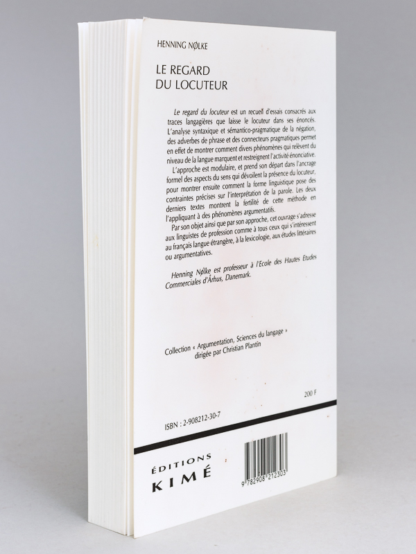 Commentaire : Bon exemplaire (ex-libris ms. en garde, bel état par ailleurs). Recueil d'essais consacrés aux traces langagières que laisse le locuteur dans ses énoncés. L'auteur, d'origine danoise, est professeur de linguistique.
