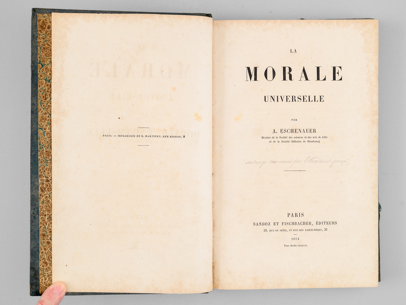 1 vol. in-8 rel. demi-basane chagrinéee verte, dos, 5 nerfs, Sandoz et Fischbacher éditeurs, Paris 1874, 467 pp.