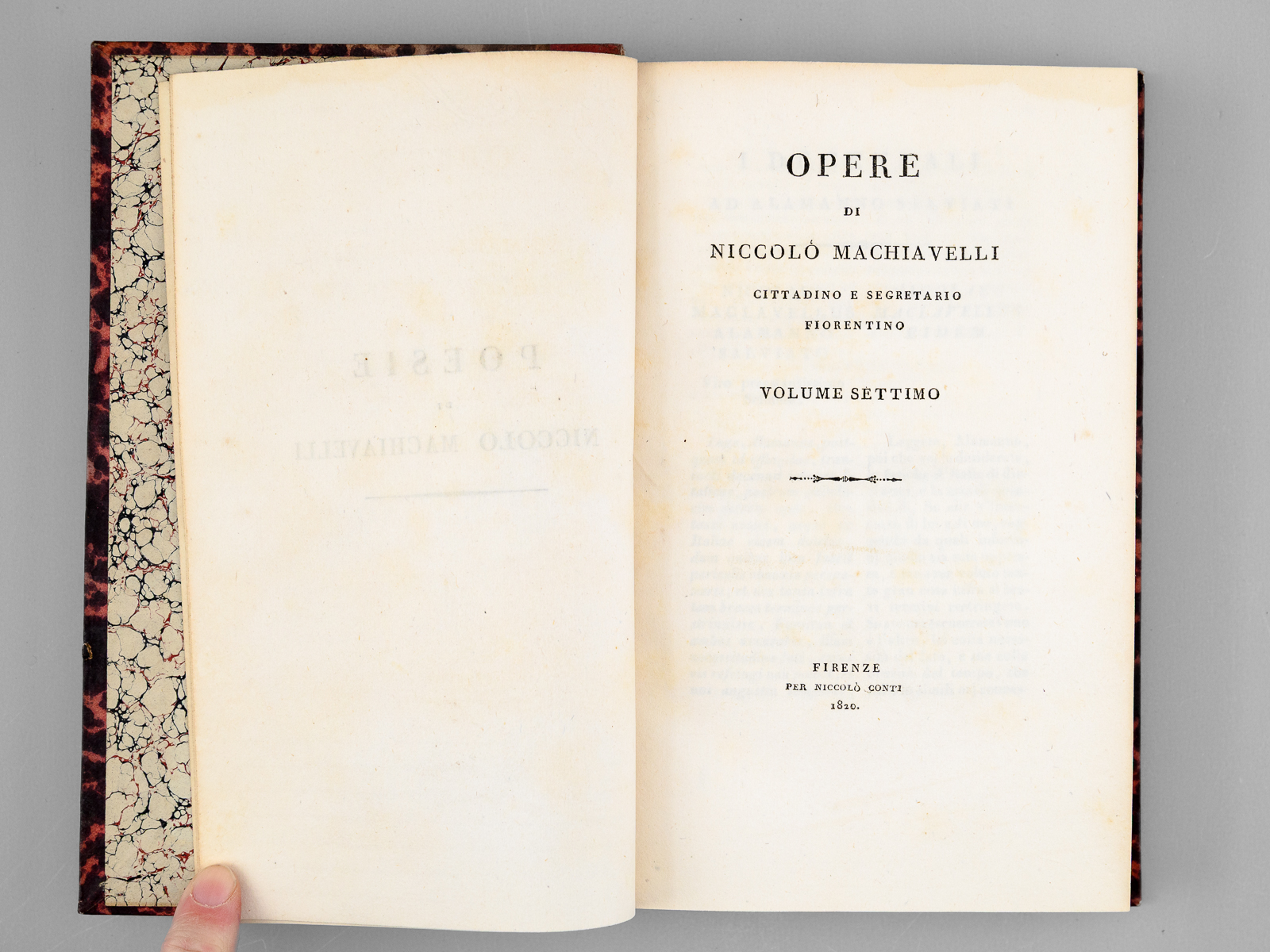 Opere di Niccolò Machiavelli cittadino e segretario fiorentino (10 Volumi) Volumi I-III : Istorie di Niccolo Machiavelli (Istorie Fiorentine) ; Volumi IV-X : Opere di Niccolò Machiavelli (IV e V : Opere ; VI : Prose ; VII : Poesie ; VIII, IX - Auteur: MACHIAVELLI, Niccolo - Année d'édition: 1818