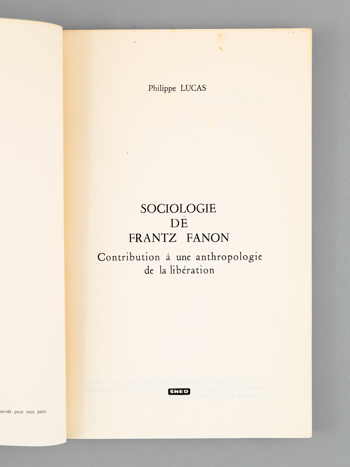 1 vol.in-8 br., Etudes et Documents, SNED, 1971, 222 pp. Commentaire : Rare exemplaire de l'édition originale de cette version refondue et corrigée de la thèse pour le doctorat en sociologie (EPHE) dirigée par Lucien Goldman, soutenue à la Sorbonne en juin 1969. Etat satisfaisant (couv. fort. frottée, bon état par ailleurs).