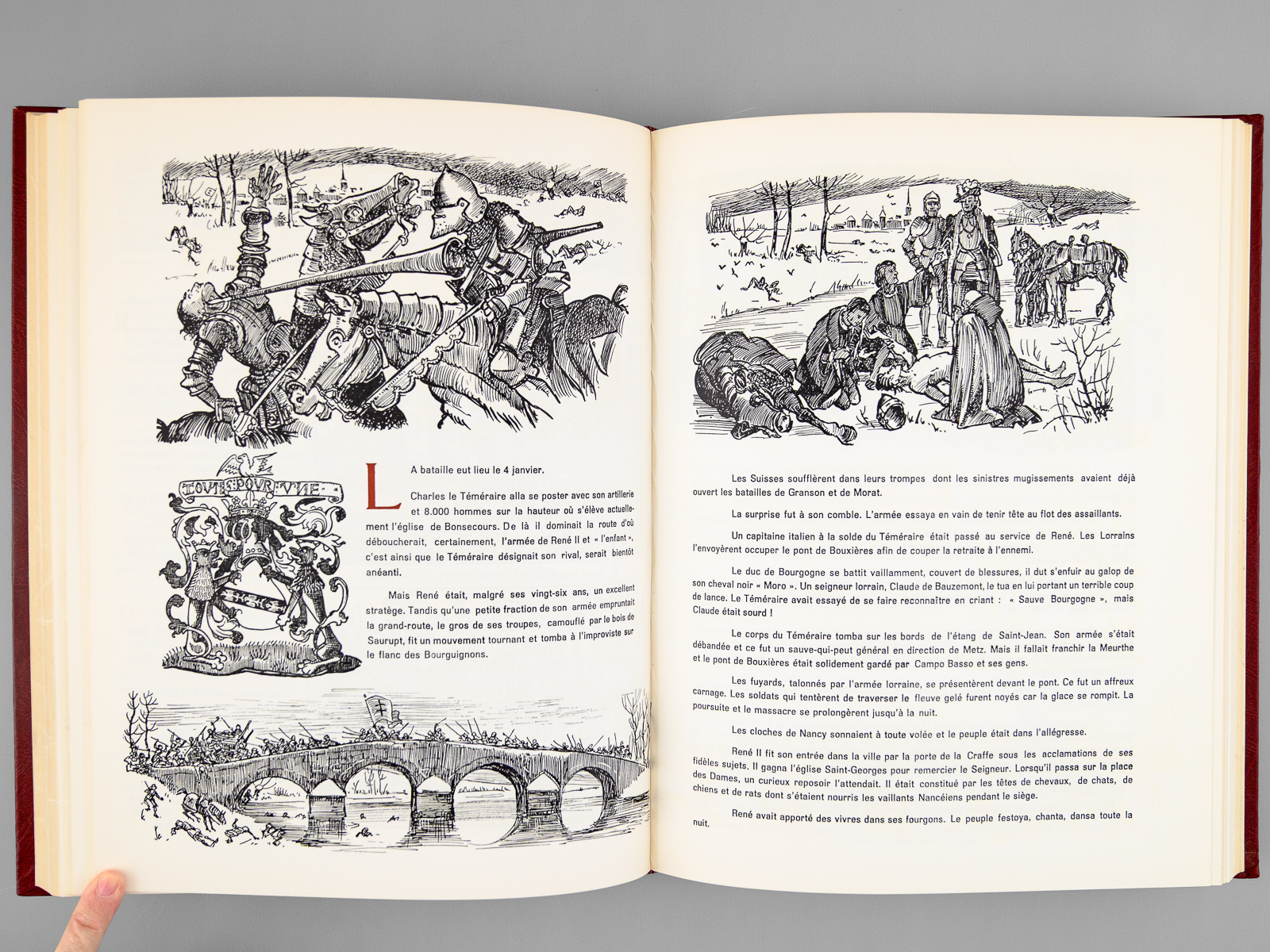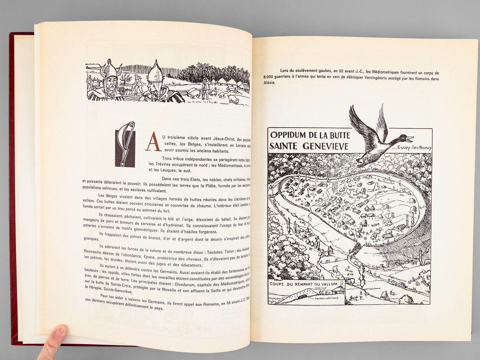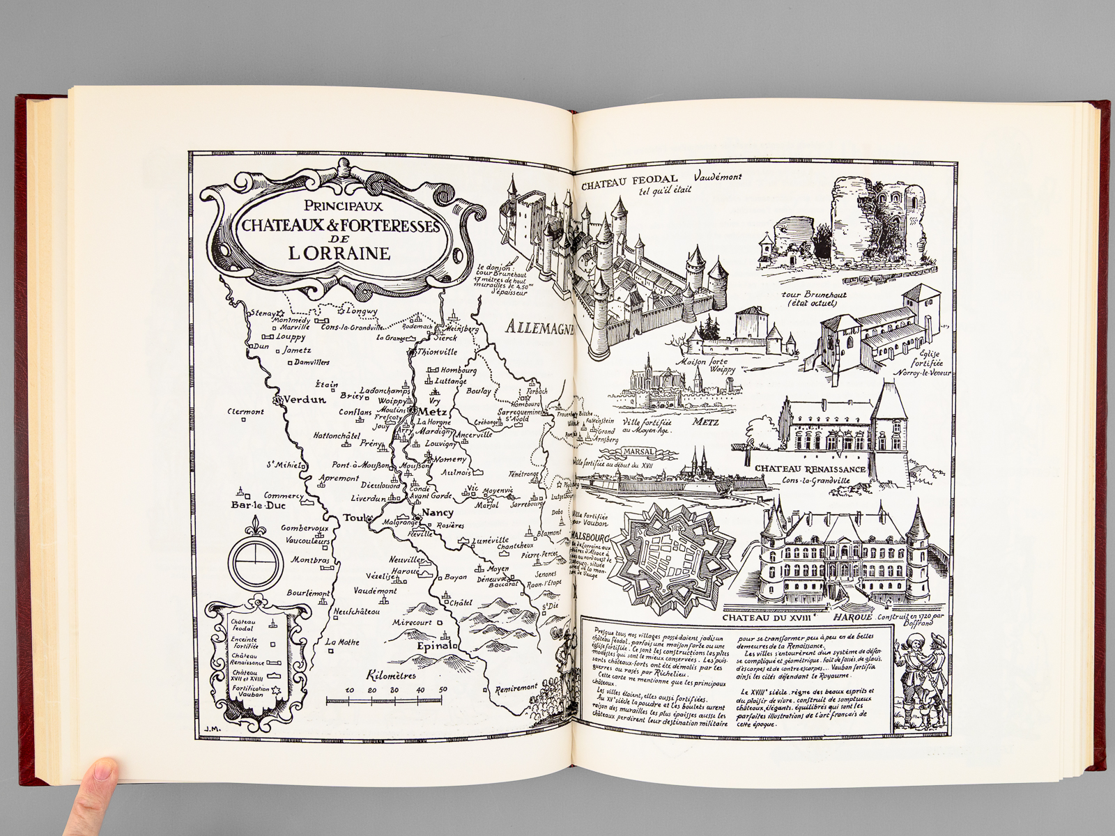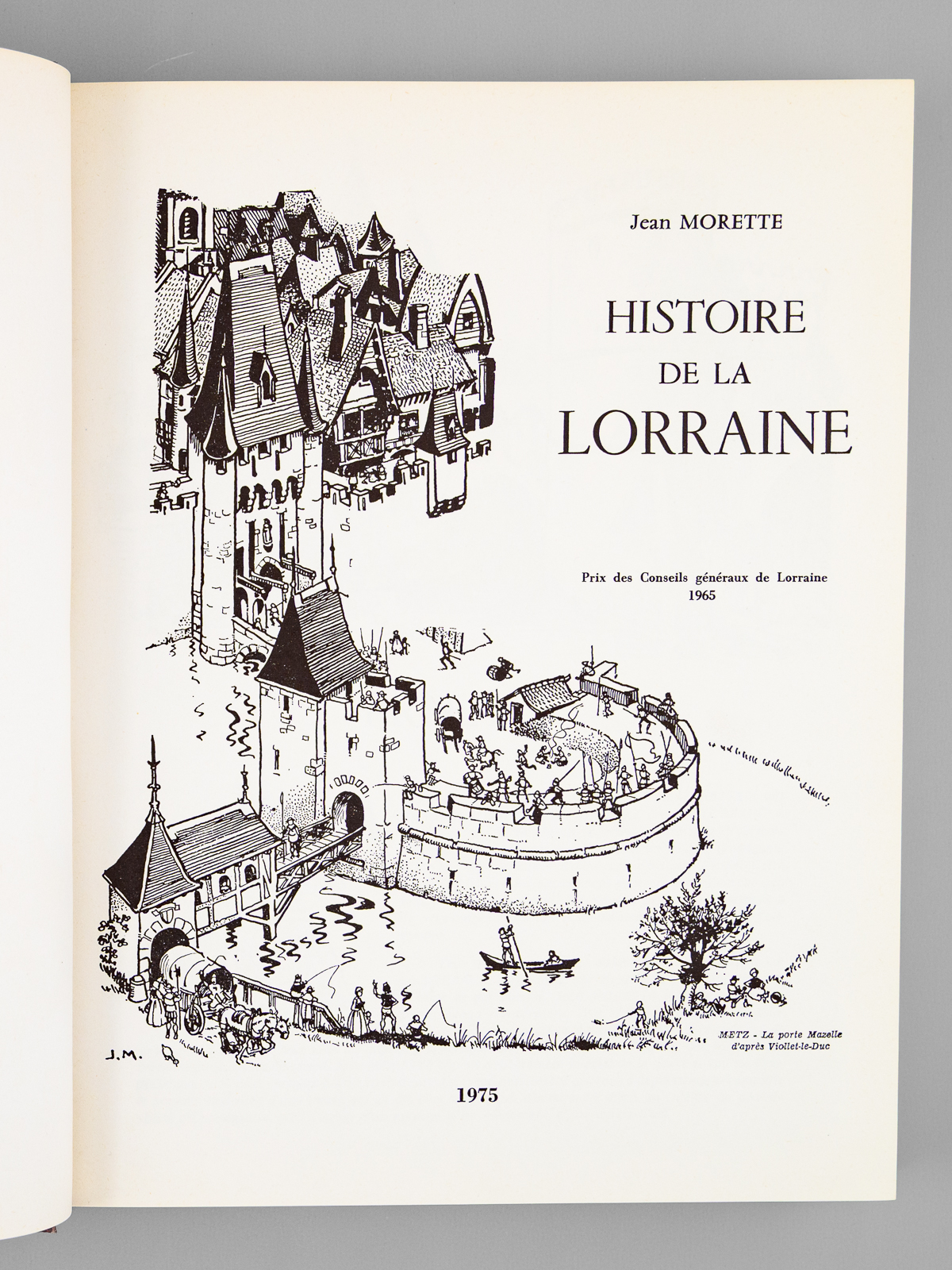 Prix des Conseils Généraux de Lorraine 1965, 1 vol. in-4 cartonnage éditeur bordeaux, Le Républicain Lorrain, 1975 Commentaire : Exemplaire bien complet des fascicules parus successivement, ici réunis en un seul volume. Ouvrage passionnant, remarquablement illustré par Jean Morette. Bon état (qq. petit frott., très bon état par ailleurs). Peu commun.