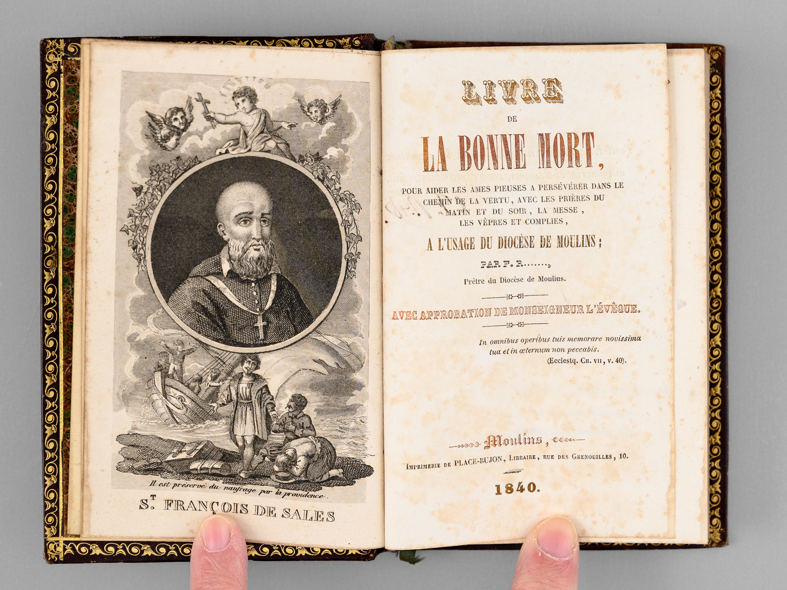 Livre de la Bonne Mort, pour aider les Ames pieuses à persévérer dans le Chemin de la Vertu, avec les Prières du Matin et du Soir, la Messe, les Vêpres et Complies, à l'Usage du Diocèse de Moulins [ Edition - Auteur: F. R........ ; [ REIGNIER, F. ] - Année d'édition: 1840