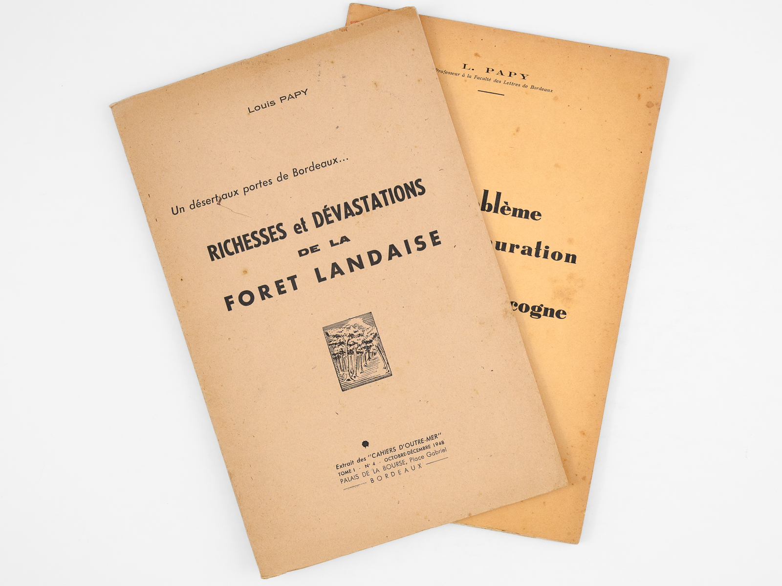 Richesses et dévastations de la forêt landaise. Un désert aux portes de Bordeaux [ On joint : ] Le Problème de la Restauration des Landes de Gascogne [ Edition originale - Livre dédicacé par l'auteur ] - Auteur: PAPY, Louis - Année d'édition: 1948