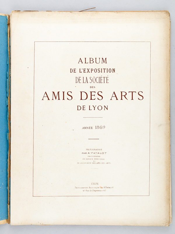 Album de l'Exposition de la Société des Amis des Arts de Lyon. Année 1869 [ Edition originale ] Photographié par A. Fatalot, photographe du service municipal et de la Société des Amis des Arts