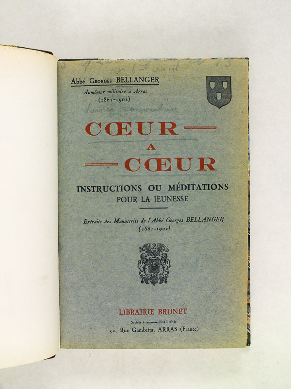 Commentaire : Bon état pour cet exemplaire bien relié. L'auteur était aumônier militaire à Arras.
