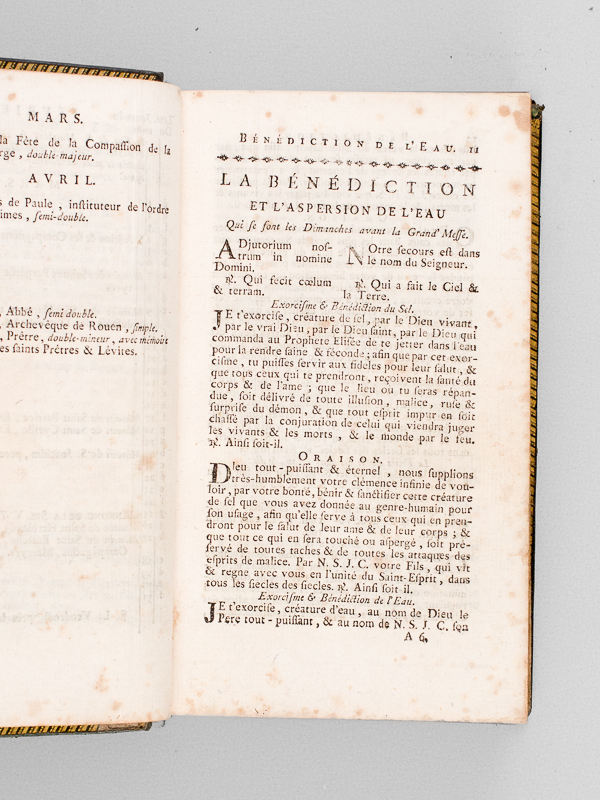 Commentaire : Joli exemplaire en belle reliure d'époque, de cet office peu commun, avec le texte latin intégralement traduit en français en regard (texte en colonnes). Bon état (plats un peu frottés, usures avec petites piq. de vers à un mors, qq. rouss., bon exemplaire par ailleurs, avec quelques belles images pieuses d'époque ou lég. postérieures).