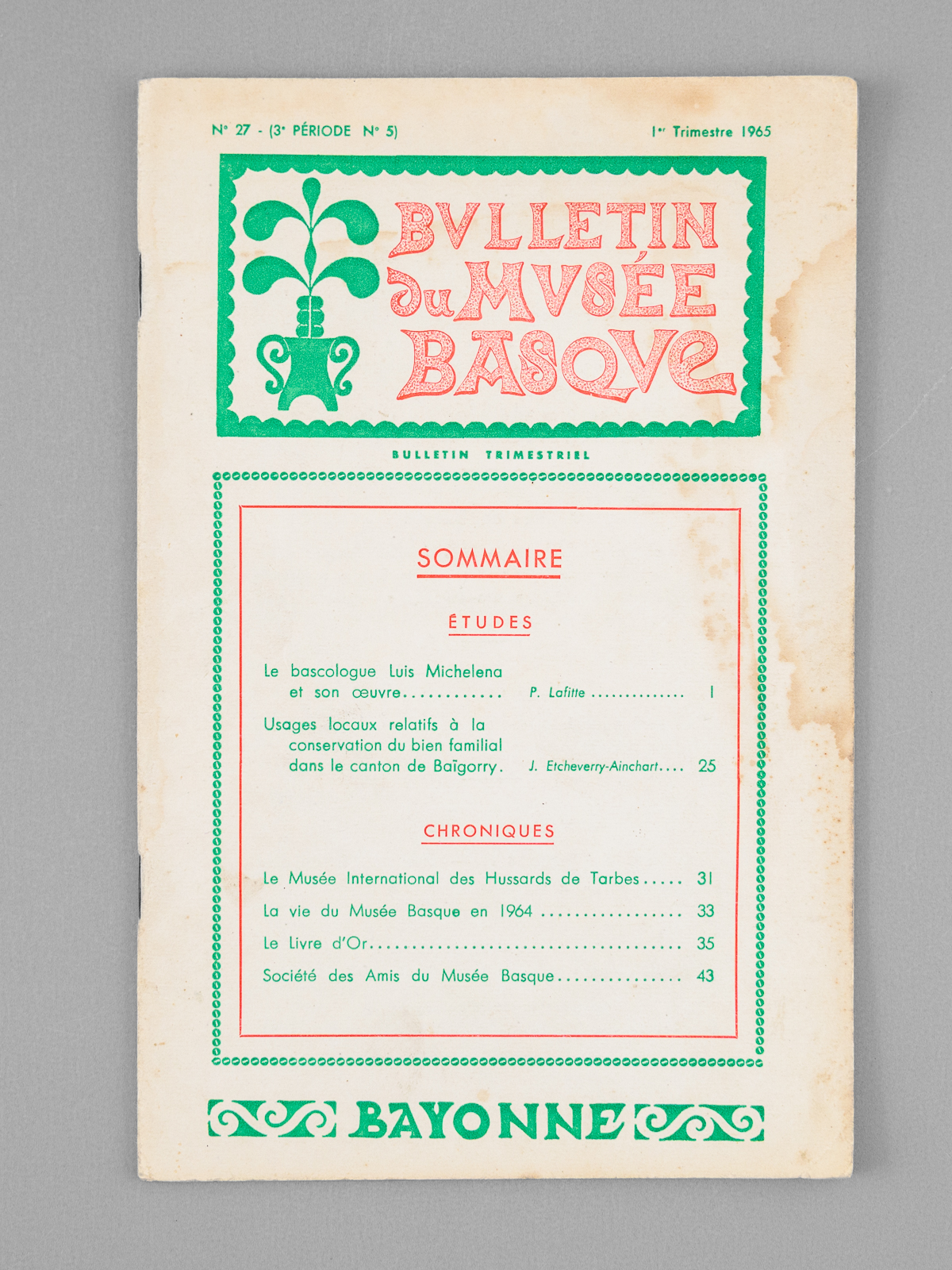 Bulletin du Musée Basque (Année 1965 complète : 1er trimestre, 2e trimestre, 3e trimestre, 4e trimestre)
