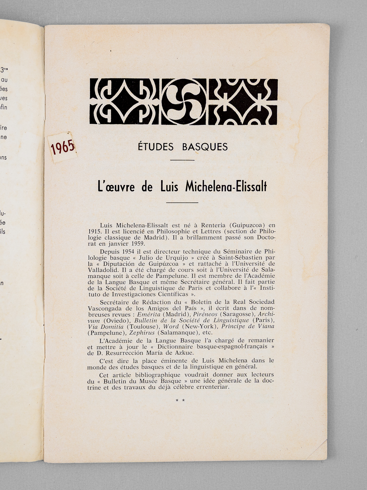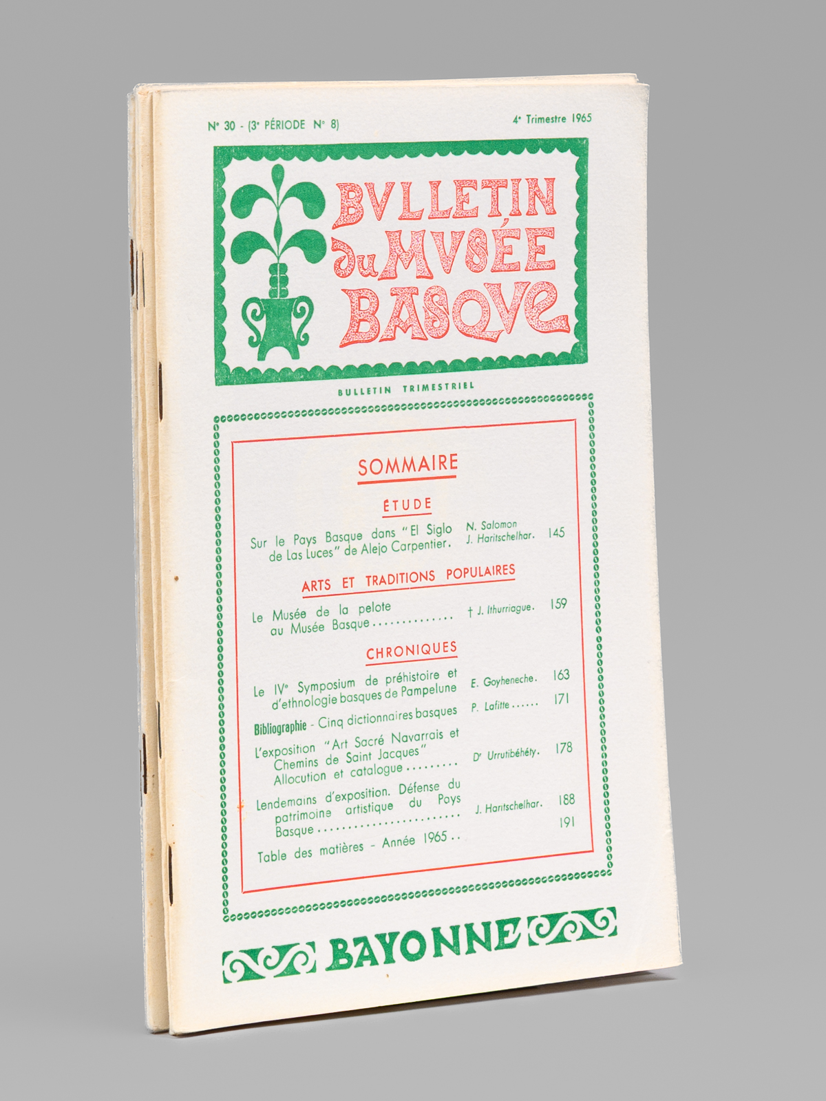 4 vol. in-12 br., Bulletin du Musée Basque, 1965, 190 pp.