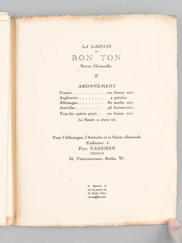 Gazette du Bon Ton. Art - Modes & Frivolités. Noël 1913 - Janvier 1914 - Numéro 1 - Auteur: Collectif ; VOGEL, Lucien ; LEPAPE, Georges ; FABIUS ; GOSE, Javier ; BOUTET DE MONVEL, B. ; BARBIER, George ; STRIMPL, L. - Année d'édition: 1914