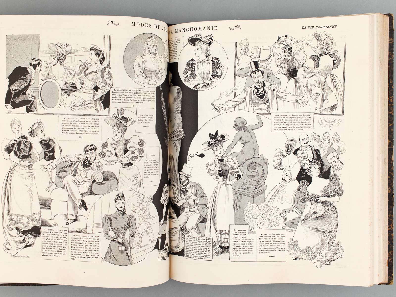 Dirigé par Marcelin, 1 vol. in-folio reliure demi-basane bleue, dos à 5 nerfs orné, La Vie Parisienne. Année 1890. 28e Année (Du Numéro 1 du 4 janvier 1890 au 27 décembre 1890), 1f., 732 pp.
