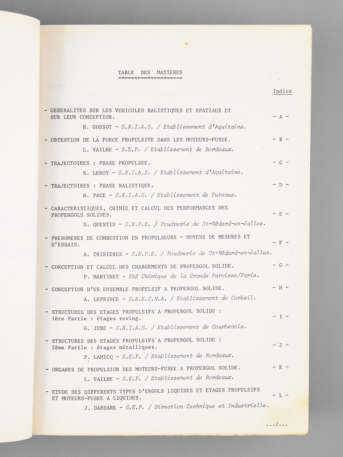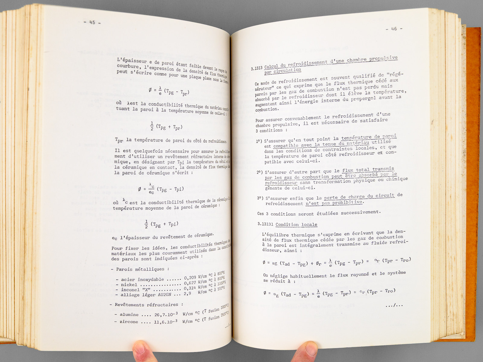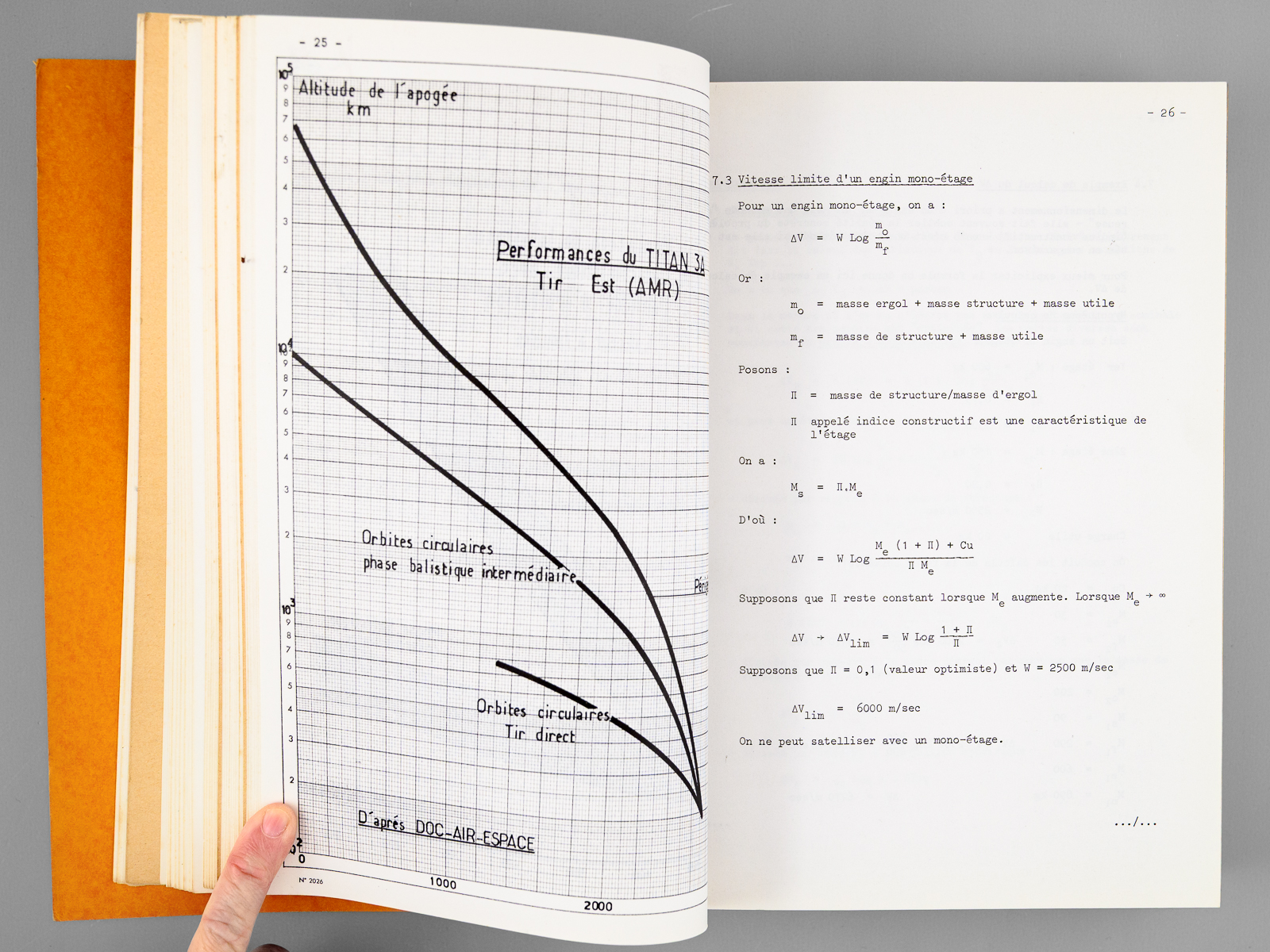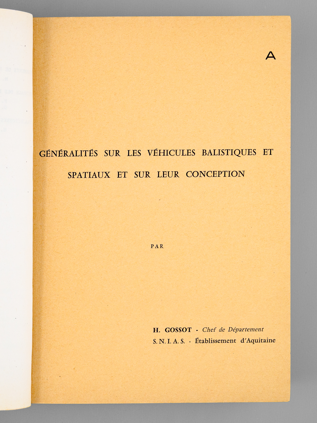 1 vol. fort in-4 sous reliure mobile à vis, Centre de Formation de l'Adera, Domaine de Villepreux, Saint-Aubin-de-Médoc, 1972, Association pour le Développement de l'Enseignement et des Recherches auprès des Universités et des Instituts de Recherche d'Aquitaine et d'Antilles-Guyane, cahiers numérotés de A à P Commentaire : Rare cours sur les ensembles à propergol solide. Bon exemplaire