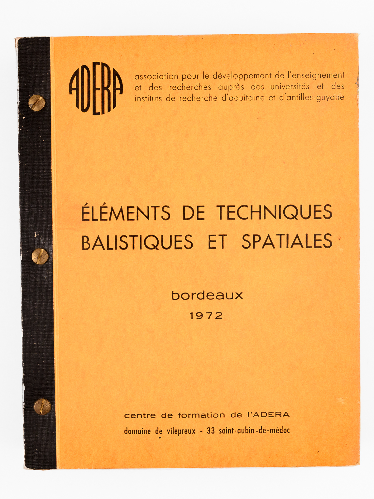 Eléments de Techniques Balistiques et Spatiales. Bordeaux 1972 - Auteur: ADERA ; Collectif ; Association pour le Développement de l'Enseignement et des Recherches auprès des Universités et des Instituts de Recherche d'Aquitaine et d'Antilles-Guyane - Année d'édition: 1972