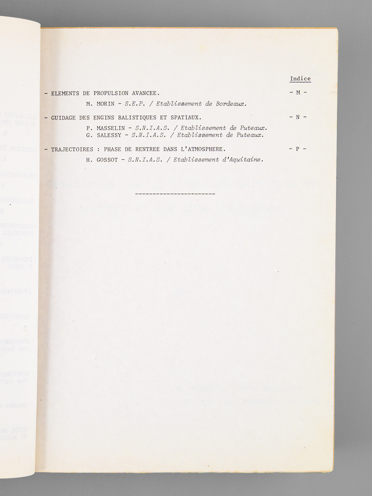 Eléments de Techniques Balistiques et Spatiales. Bordeaux 1972