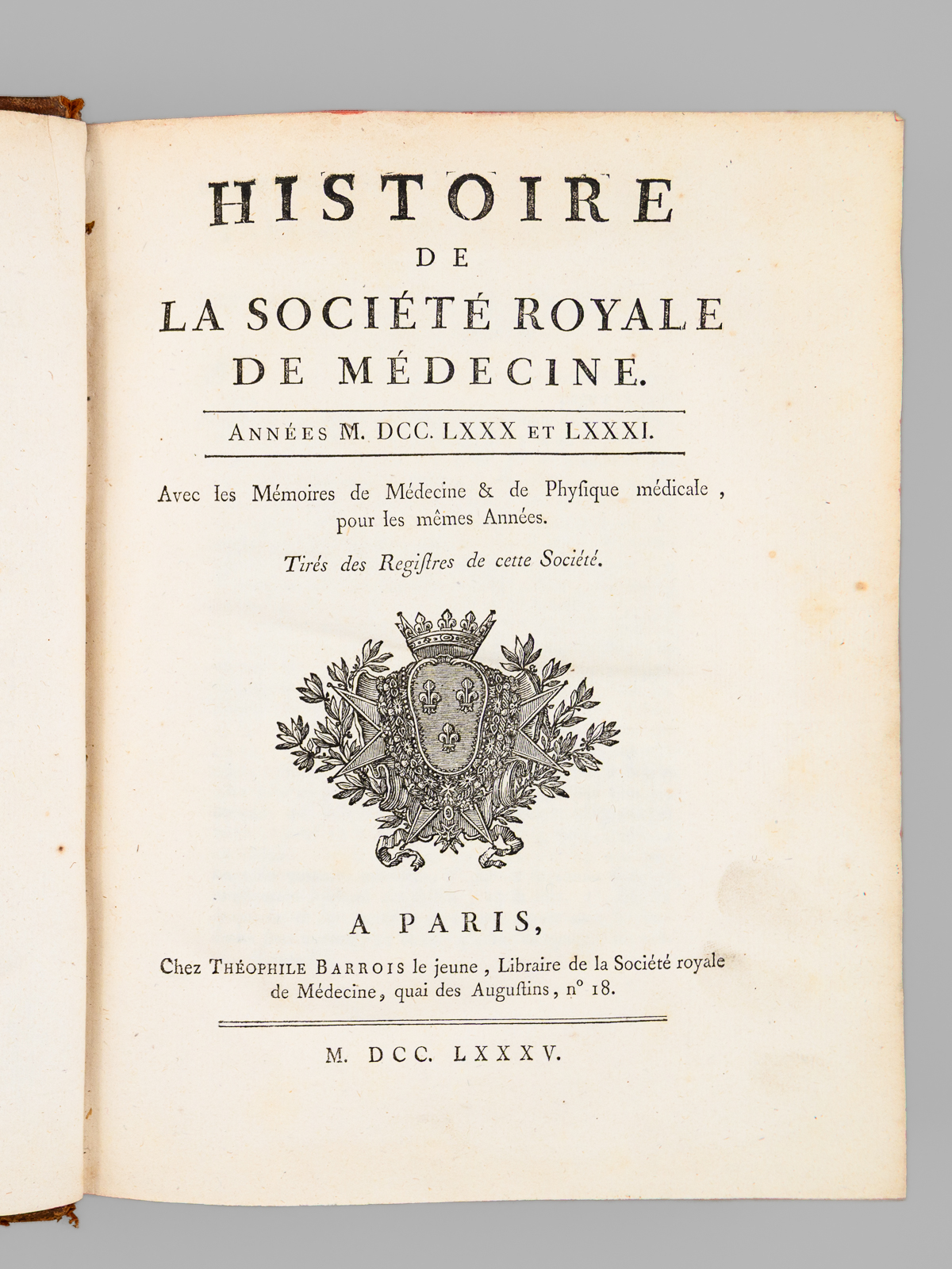 Pharmacopée du Collège Royal des Médecins de Londres (Tome I) Histoire de la Société Royale de Médecine. Années M.DCC.LXXX et LXXXI. Avec les Mémoires de Médecine & de Physique médicale, pour les mêmes Années. Tirés des Registres de cette Soci&eacu