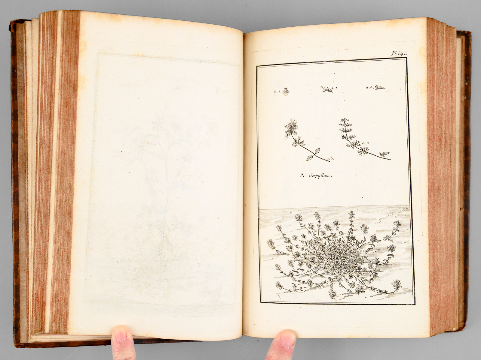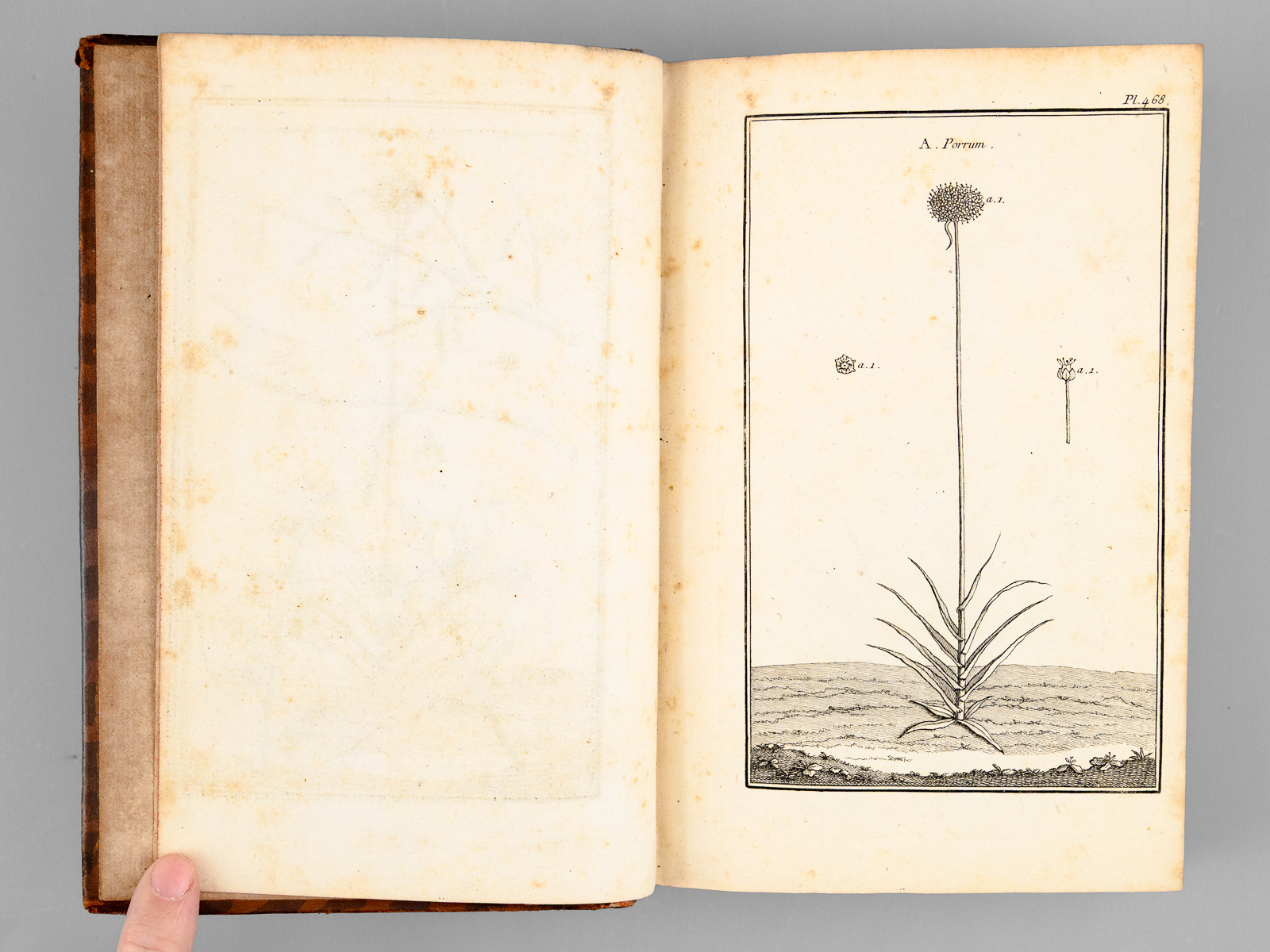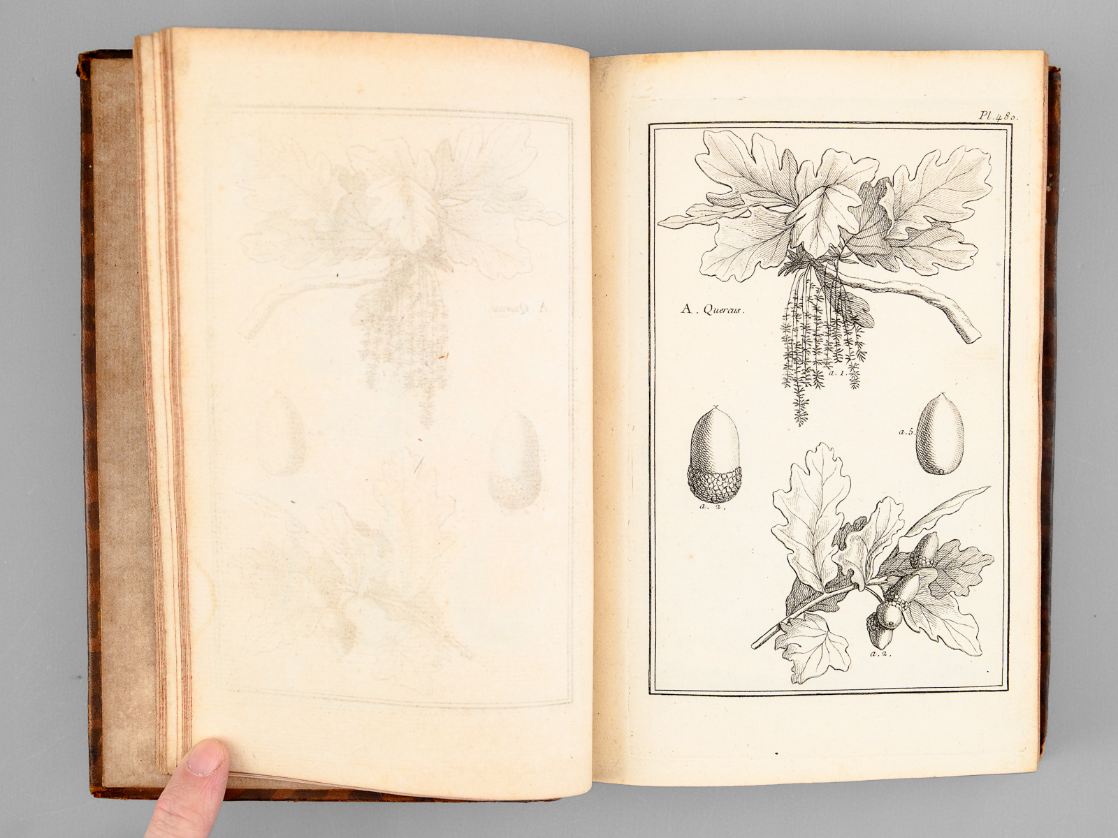 1 vol. in-8 reliure de l'époque pleine basane marron, dos à 5 nerfs orné, [ Didot le Jeune, 1767 ], 177 planches : 467 à 643 - et Texte d'explication des planches pp. 279-372 Commentaire : Tome second seul, recueillant 177 belles planches de botaniques dessinées par le grand botaniste et dessinateur François-Alexandre Garsault (1693-1778), ainsi que le texte explicatif. Etat très satisfaisant (dos frotté avec mq. en coiffes, bon état intérieur, ex-libris ms. ancien en garde).