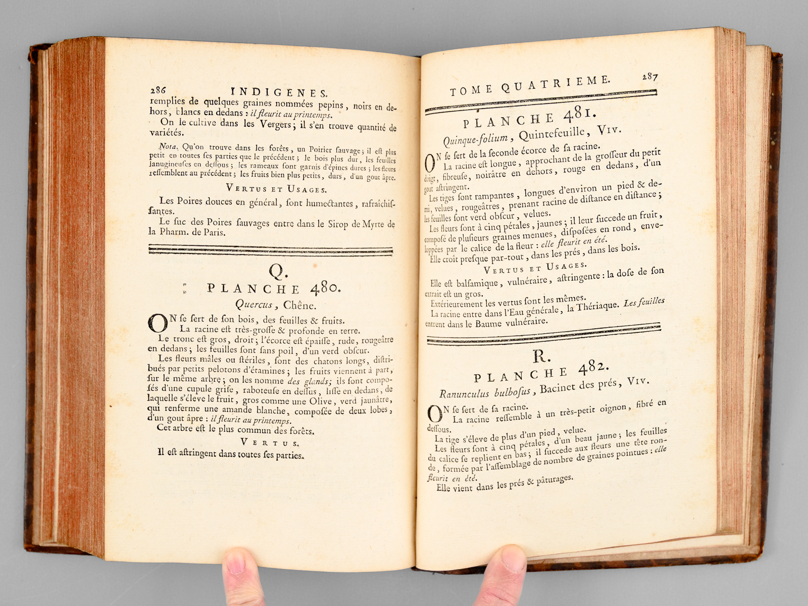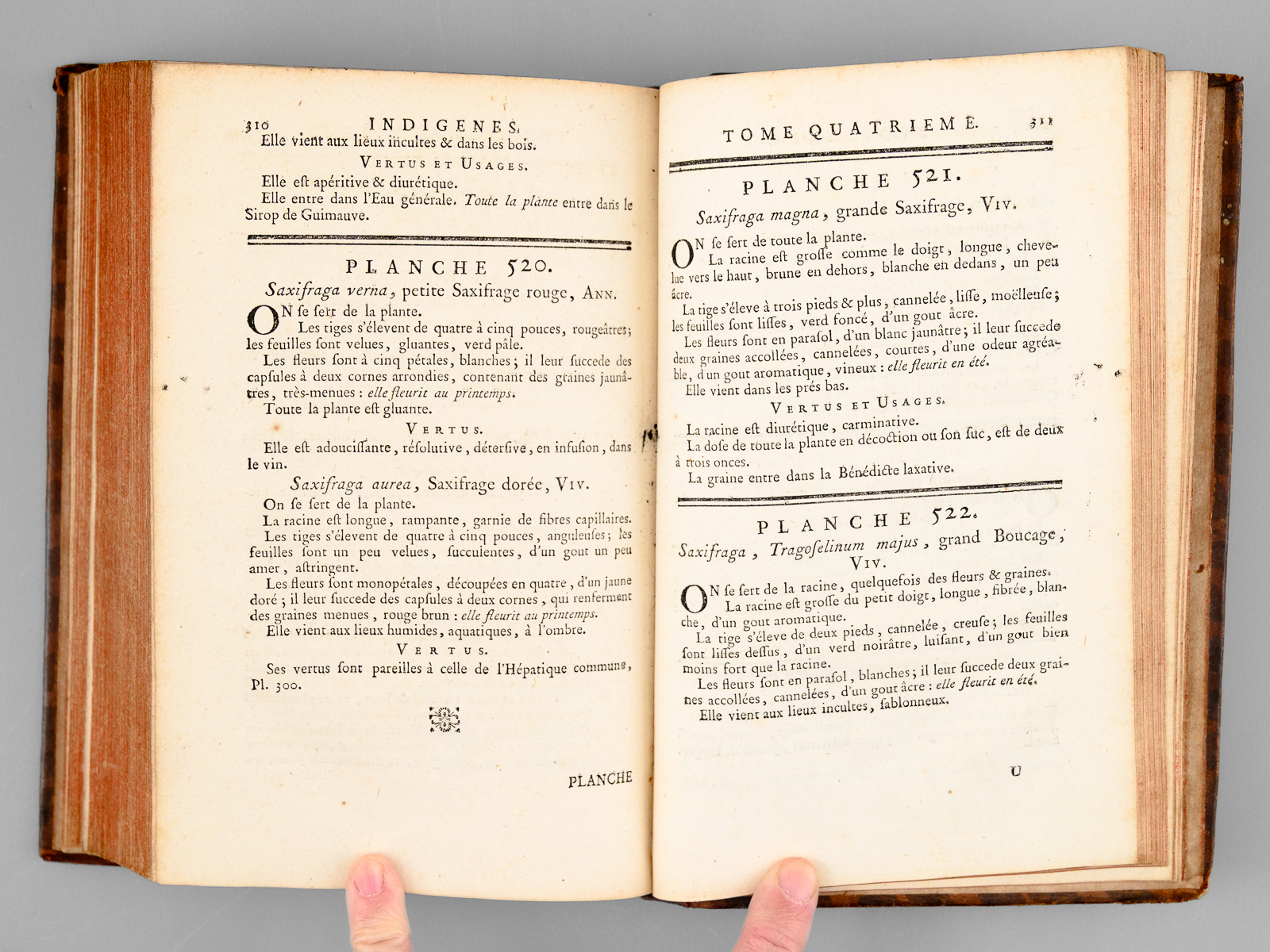 Description, vertus et usages de sept cents dix-neuf plantes, tant étrangères que de nos climats, et de cent trente-quatre animaux. Tome IV : Plantes Indigènes (177 planches : 467 à 643 - et Texte d'explication des planches)