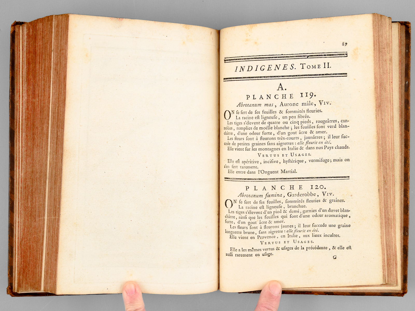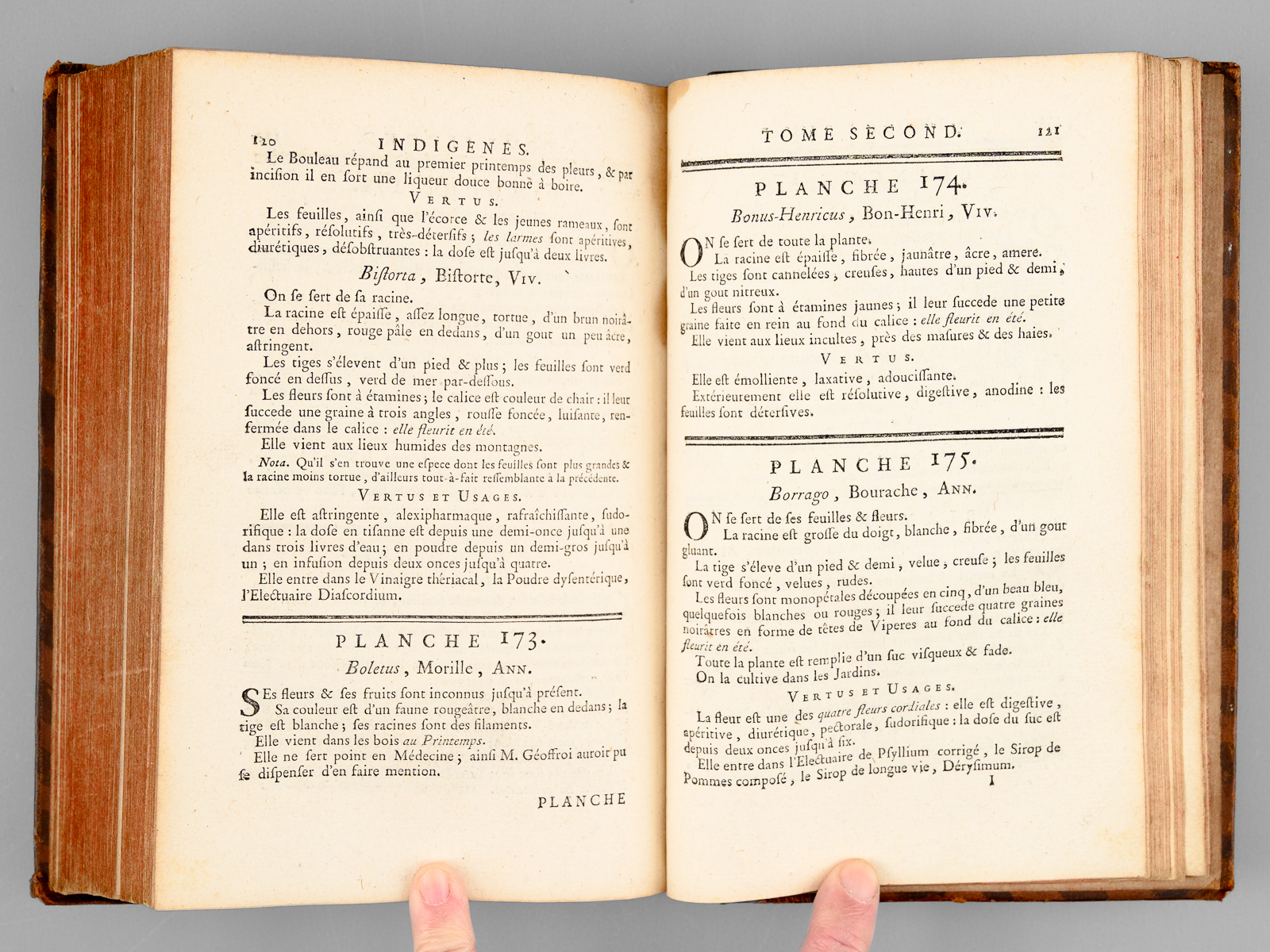 Description, vertus et usages de sept cents dix-neuf plantes, tant étrangères que de nos climats, et de cent trente-quatre animaux. Tome II : Plantes Indigènes (174 planches : 119 à 292 - et Texte d'explication des planches)