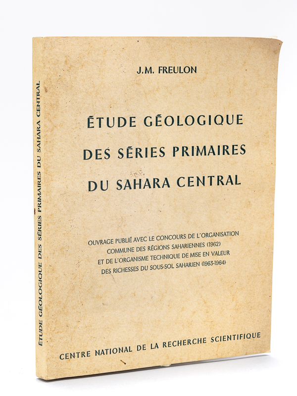 Ouvrage publié avec le Concours de l'Organisation commune des Régions Sahariennes (1962) et de l'Organisme Technique de Mise en Valeur des Richesses du sous-sol saharien (1963-1964), 1 vol. in-4 br., Centre National de la Recherche Scientifique, 1964, 191 pp. avec 18 planches hors texte Commentaire : Etat très satisfaisant (couv. frottée, bon état par ailleurs, avec une grande photo jointe de l'auteur). On joint un courrier de félicitation, de la part du Ministre de la Défense Nationale, remerciant l'auteur, qui, 'grâce à ses connaissances très étendues des régions frontalières franco-libyennes et à son expérience saharienne, a rendu des services éminents à la Délégation chargée de négocier un traité avec la Libye'