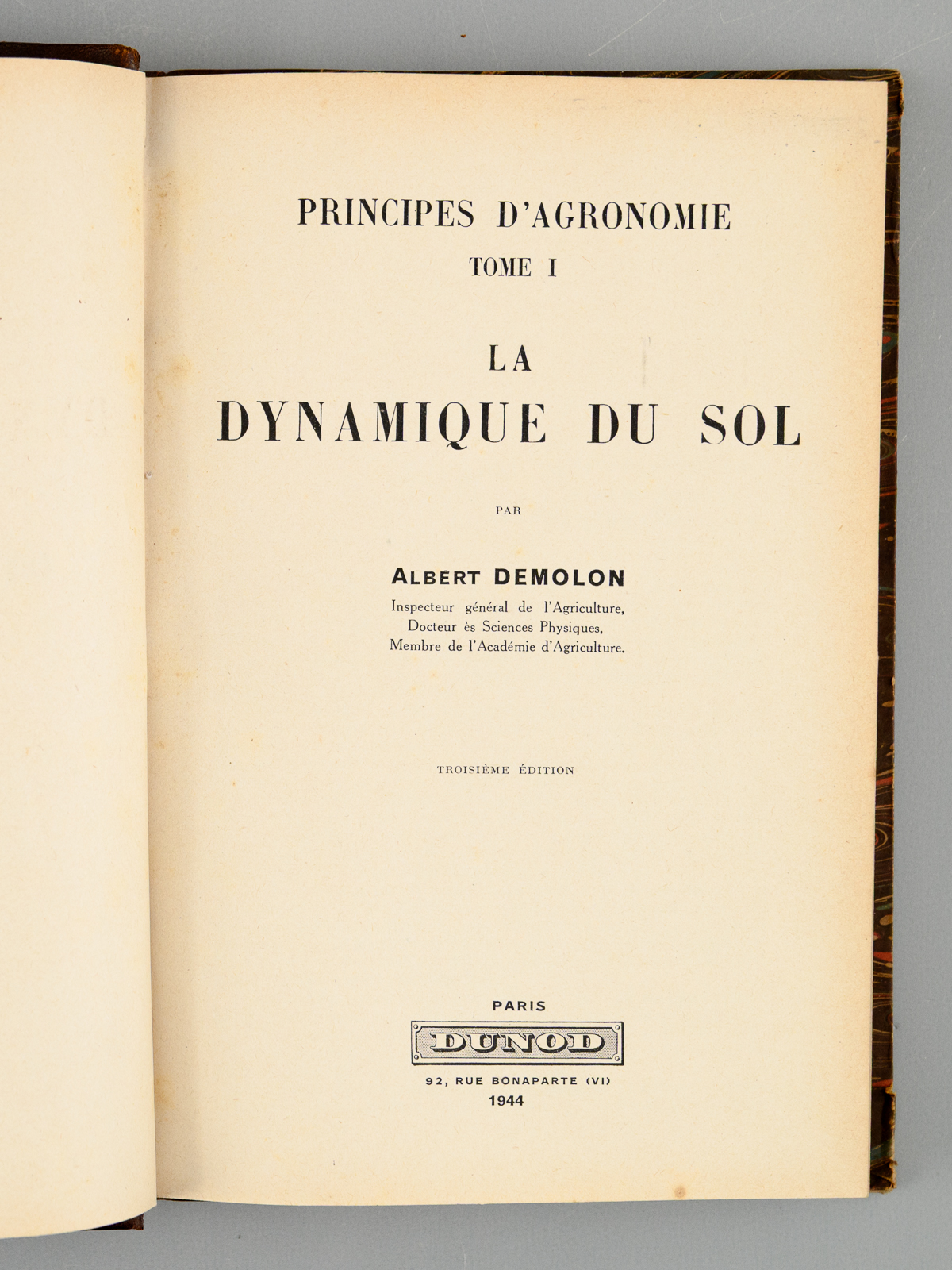 Principes d'Agronomie (2 Tomes - Complet) Tome I : La Dynamique du Sol ; Tome II : Croissance des Végétaux cultivés - Auteur: DEMOLON, Albert - Année d'édition: 1944