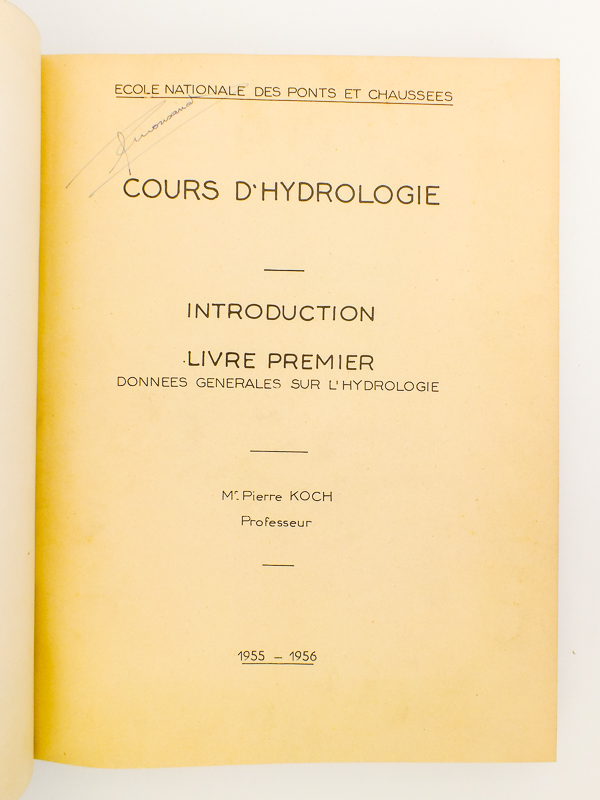 Cours d'Hydrologie ( 1955-1956 ) : Livre premier, Données générales sur l'hydrologie ; Livre deuxième, Grands domaines d'application - Auteur: KOCH, Pierre ; Ecole Nationale des Ponts et Chaussées - Année d'édition: 1955
