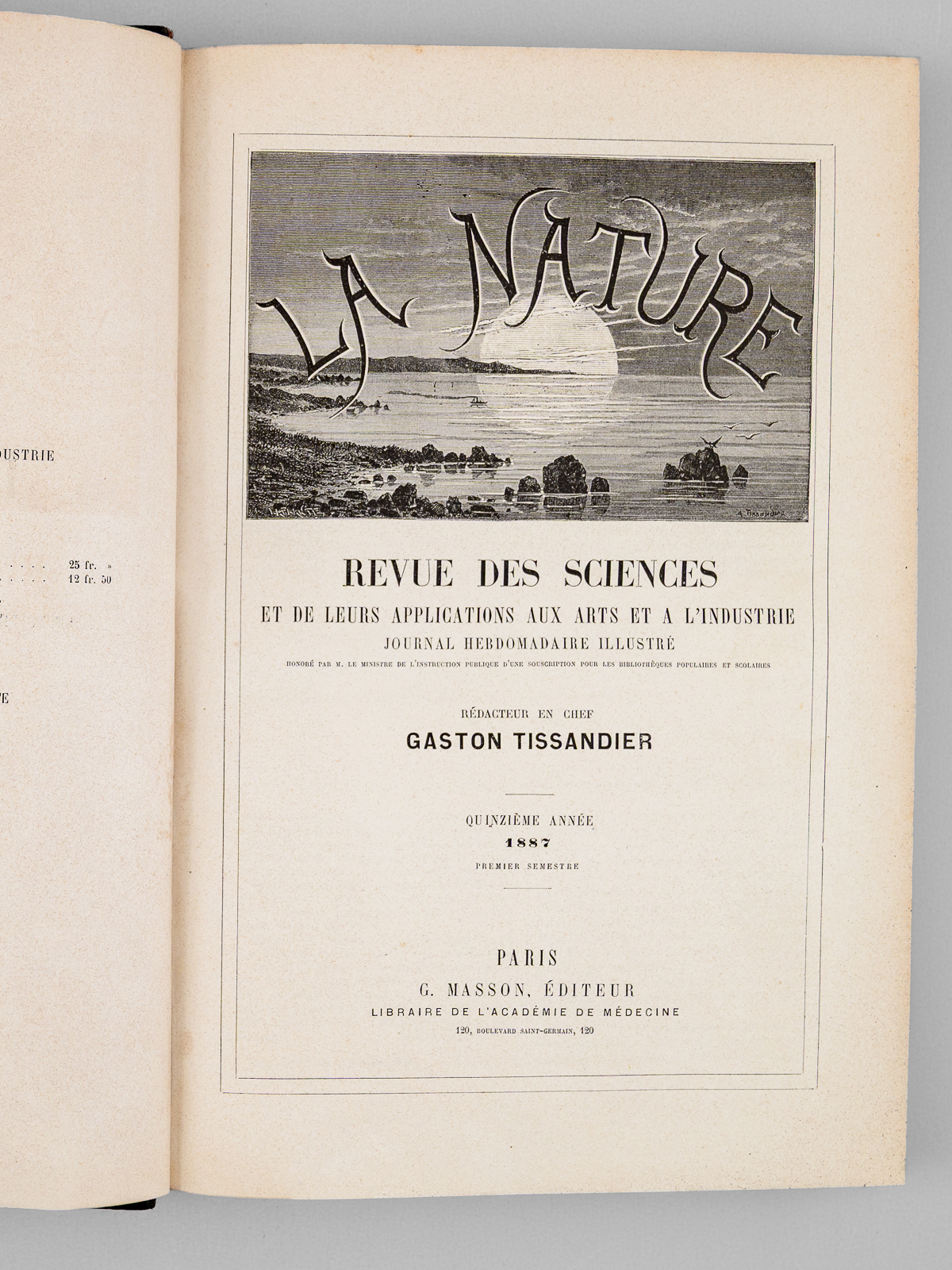 La Nature. Revue des Sciences et de leurs applications aux Arts et à l'Industrie. Quinzième Année 1887. [ Année 1887 complète ] Premier semestre ; Deuxième semestre