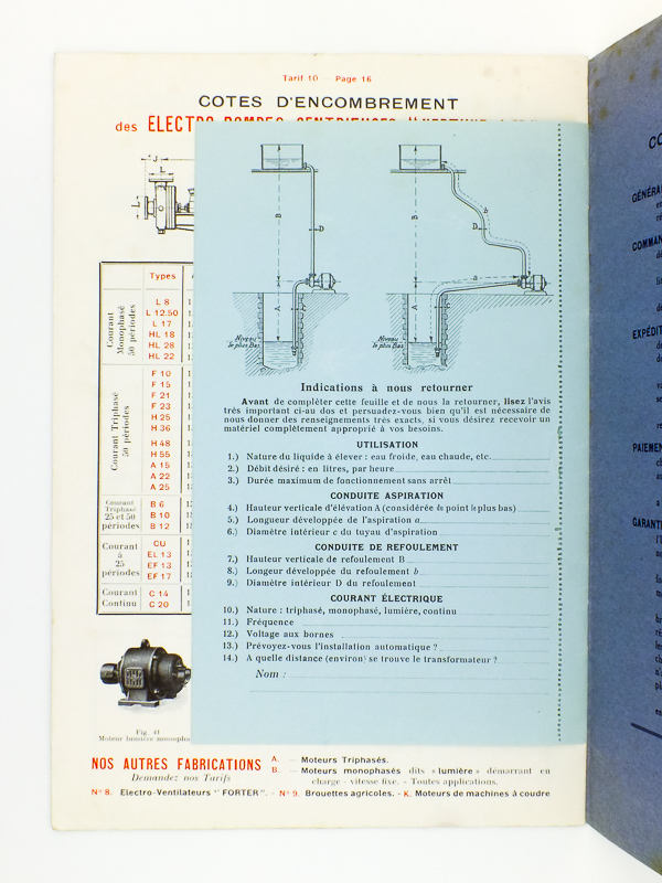 La Nouvelle Neptune J.M. , électro-pompe centrifuge Julien & Mège , Lyon ( Tarif 10 , 1930 )