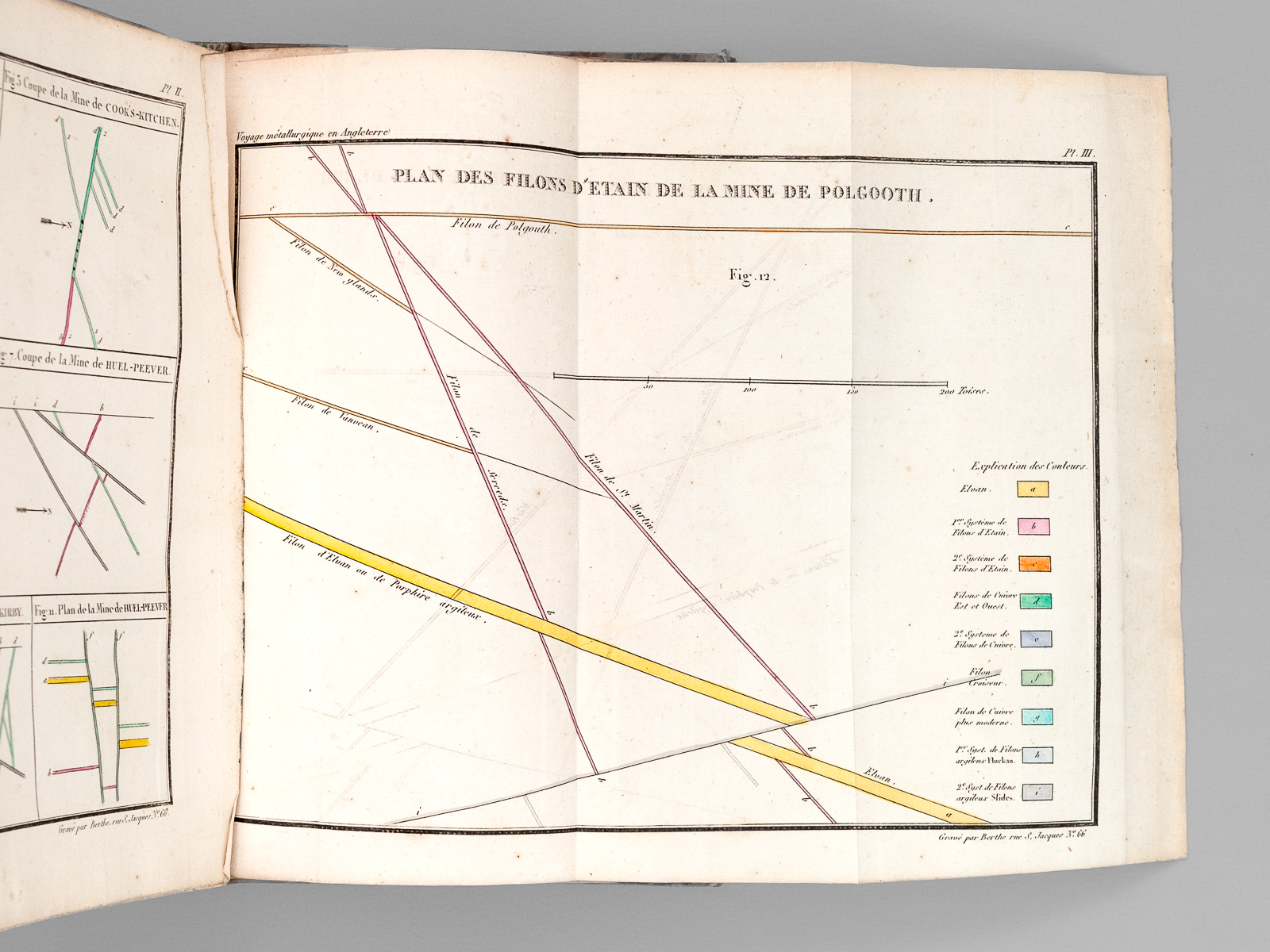 1 vol. fort in-8 reliure de l'époque demi-veau blond, toutes tranches marbrées, Bachelier, Successeur de Mme Ve Courcier, Paris, 1827, XII-572 pp. avec 17 planches dépliantes (dont une carte géologique en couleurs de l'extrême sud-ouest du Cornouailles et une planche en couleurs)